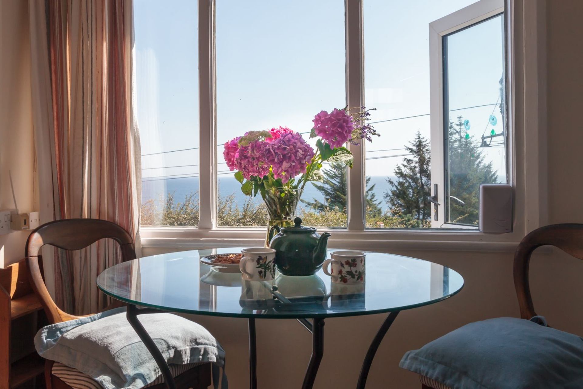 A delightful holiday cottage with a lovely elevated view out to sea. A railway enthusiasts delight s