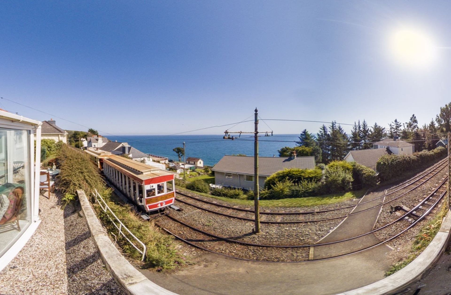 Location was great with tram and bus connections right outside our door less than 1mins walk away. Laxey seaside area about 20mins walk downhill about 45mins uphill extremely steep unless yer fit. Plenty of walks in the area for dog lovers like us. And Laxey has many train / tram connections plus 15 to 20mins from Douglas by car.\n\nDownside there was a low wall at back of house not ideal for dogs be nice if owner has a glass panelled barrier there as a suggestion. We blocked it off. Plus because of Tram station at rear of house twice cars parked blocking the driveway to house. Although a traffic cone is provided , it was handier for us to reverse into driveway as door were in boot of SUV.\nBut you needed the pull in area before you made that manouver as sometimes traffic was heavy.\n\nOther than that we had a great holiday and would recommend it to anyone wishing to go to the Isle of Man with their pets.