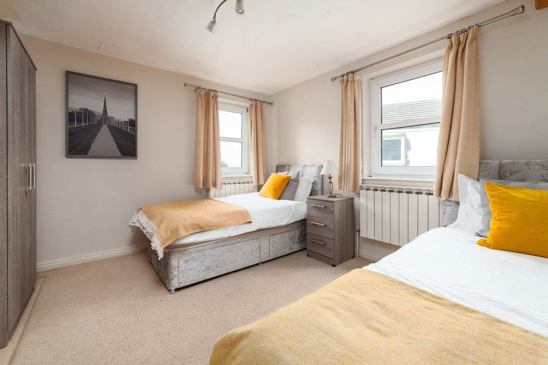 Bedroom 2: Twin room, bedside tables, wardrobe