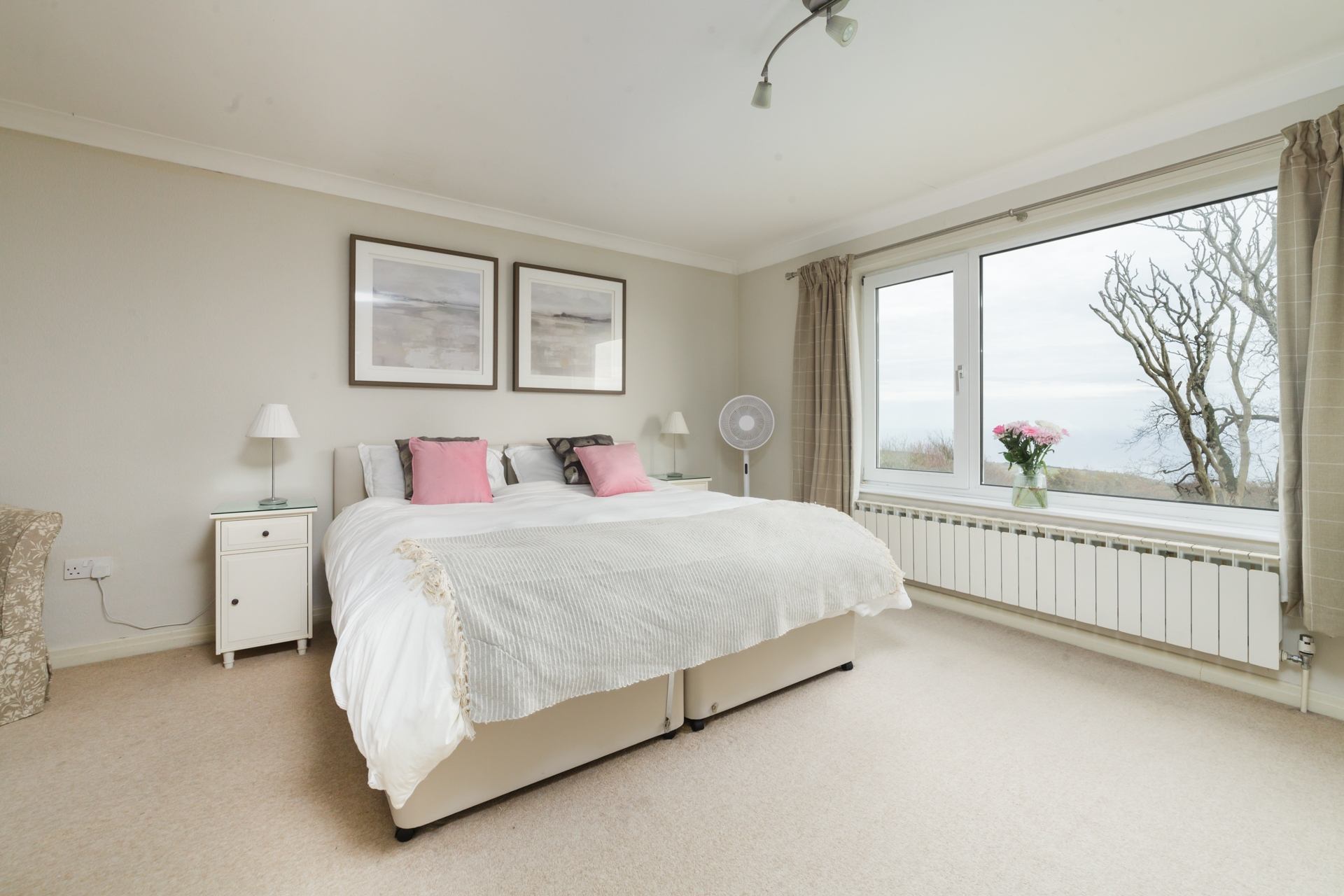 Bedroom 5: Super-king zip and link bed which can be configured as double or twin, bedside tables, walk in wardrobe.