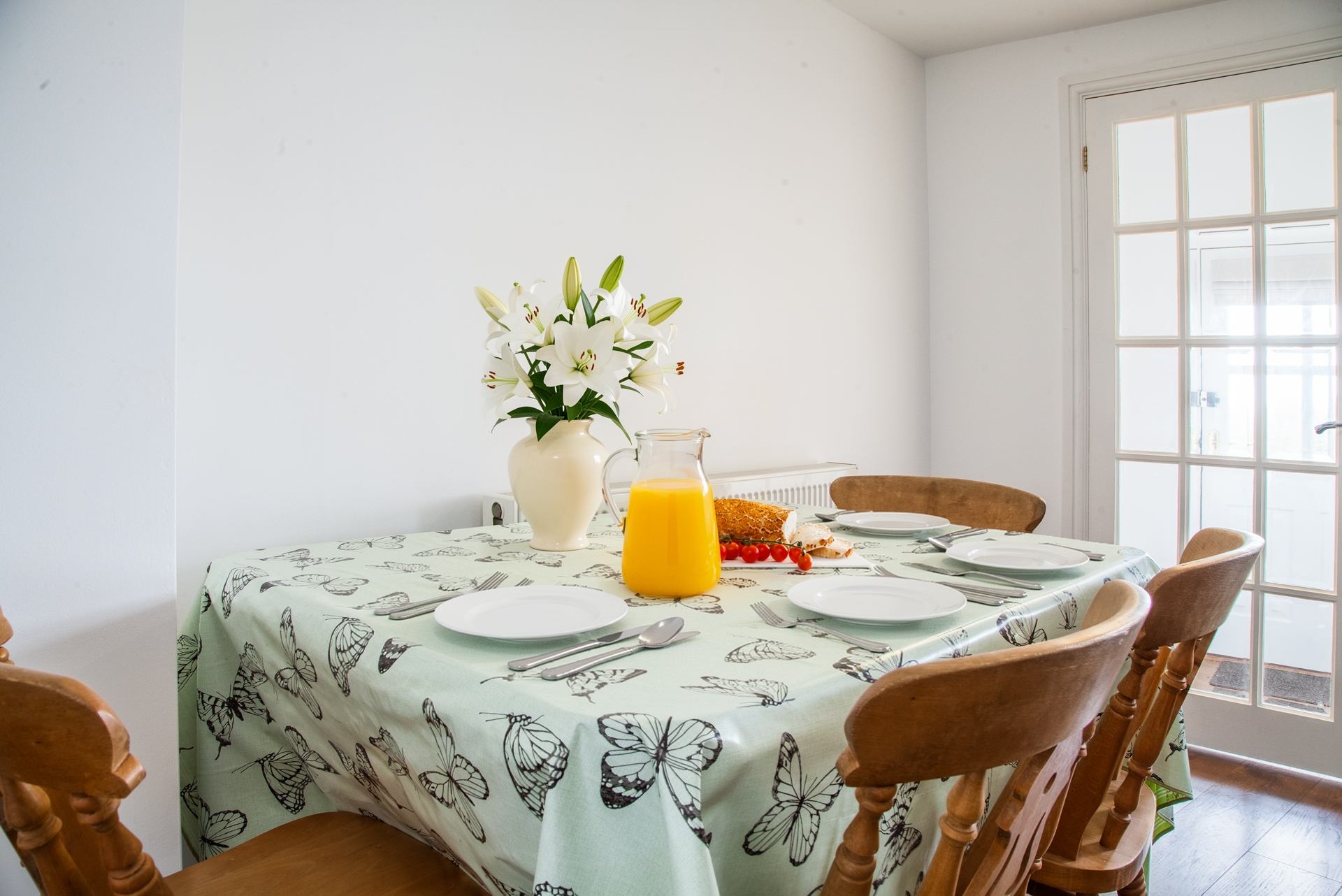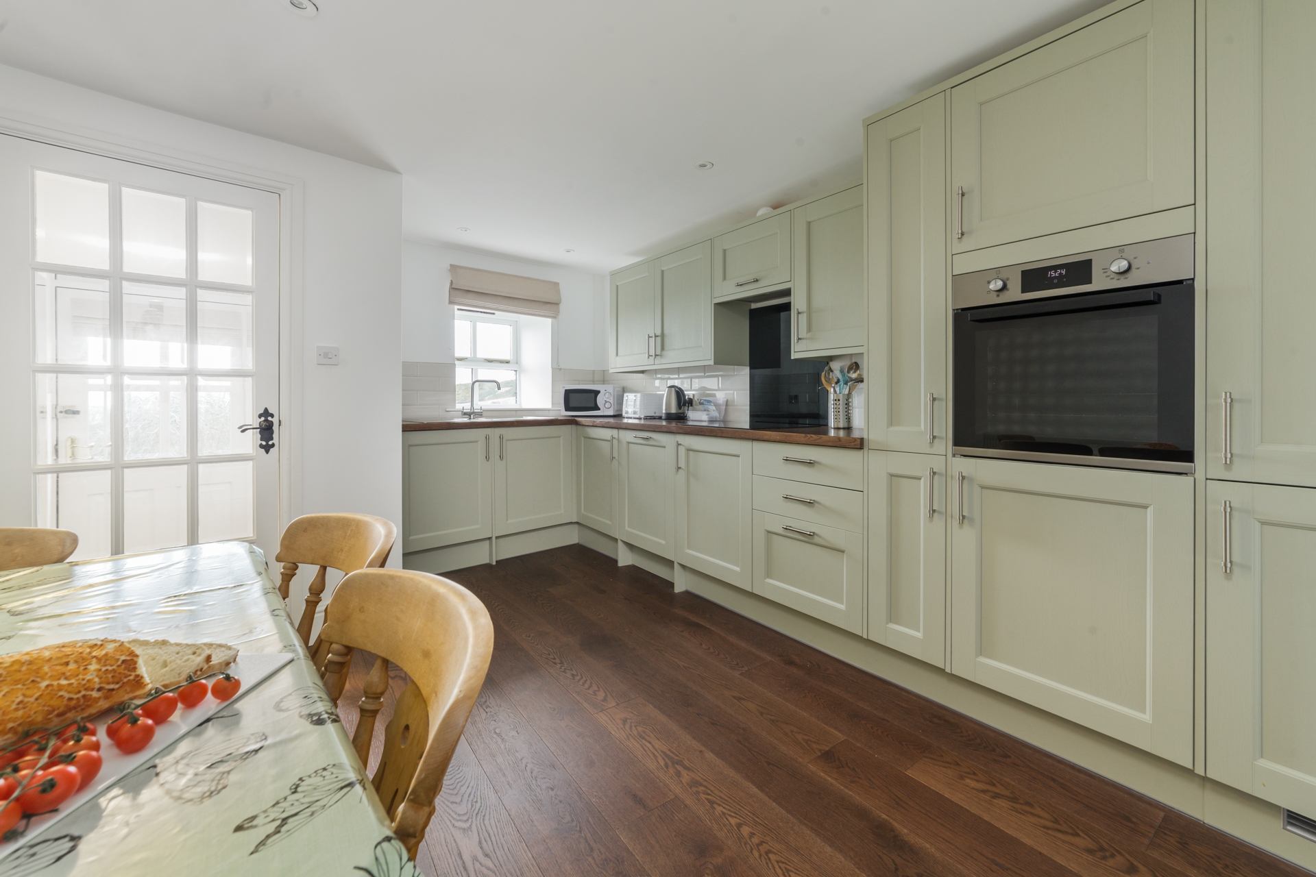 Kitchen & Dining area: Fully equipped kitchen and dining table with four chairs.
