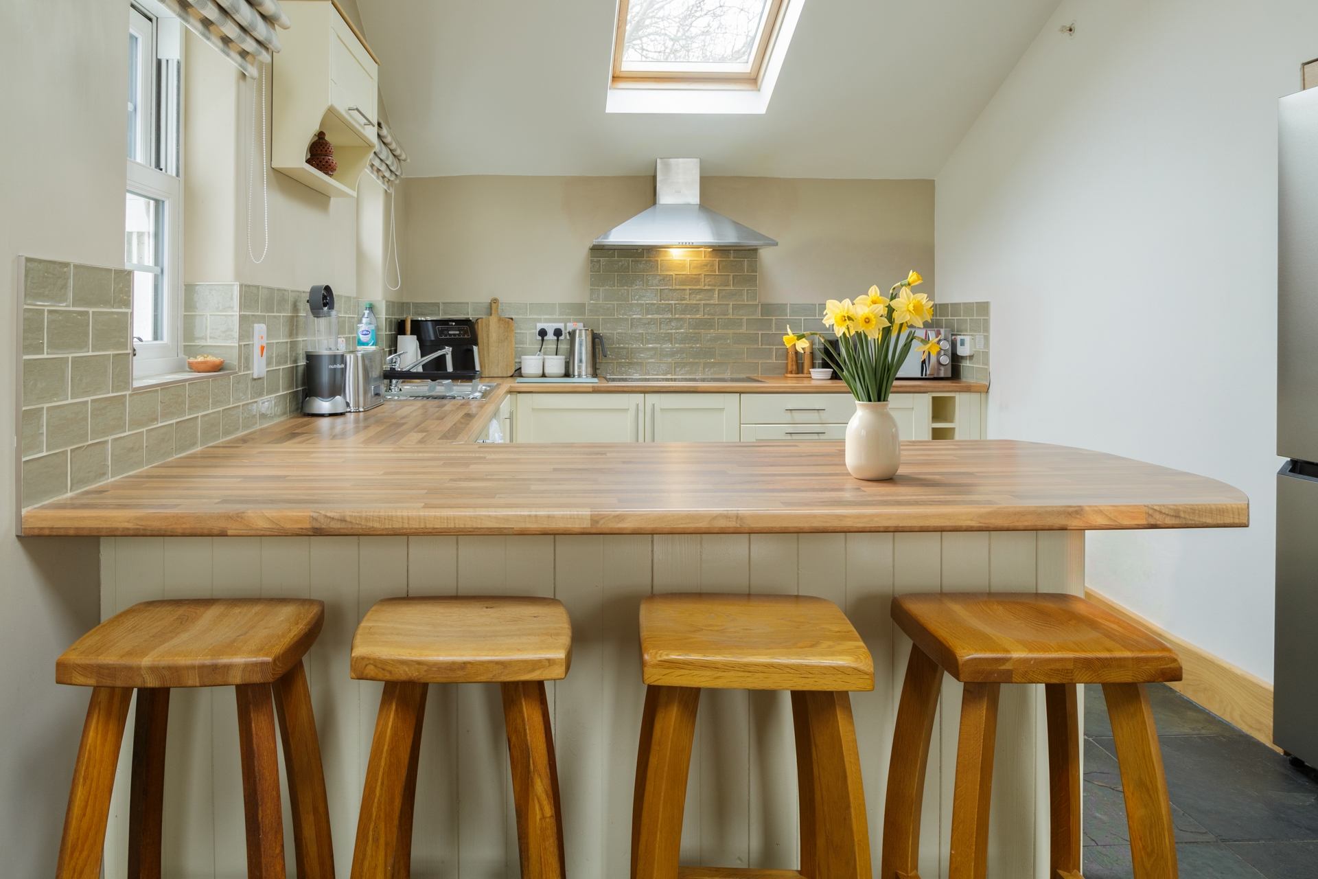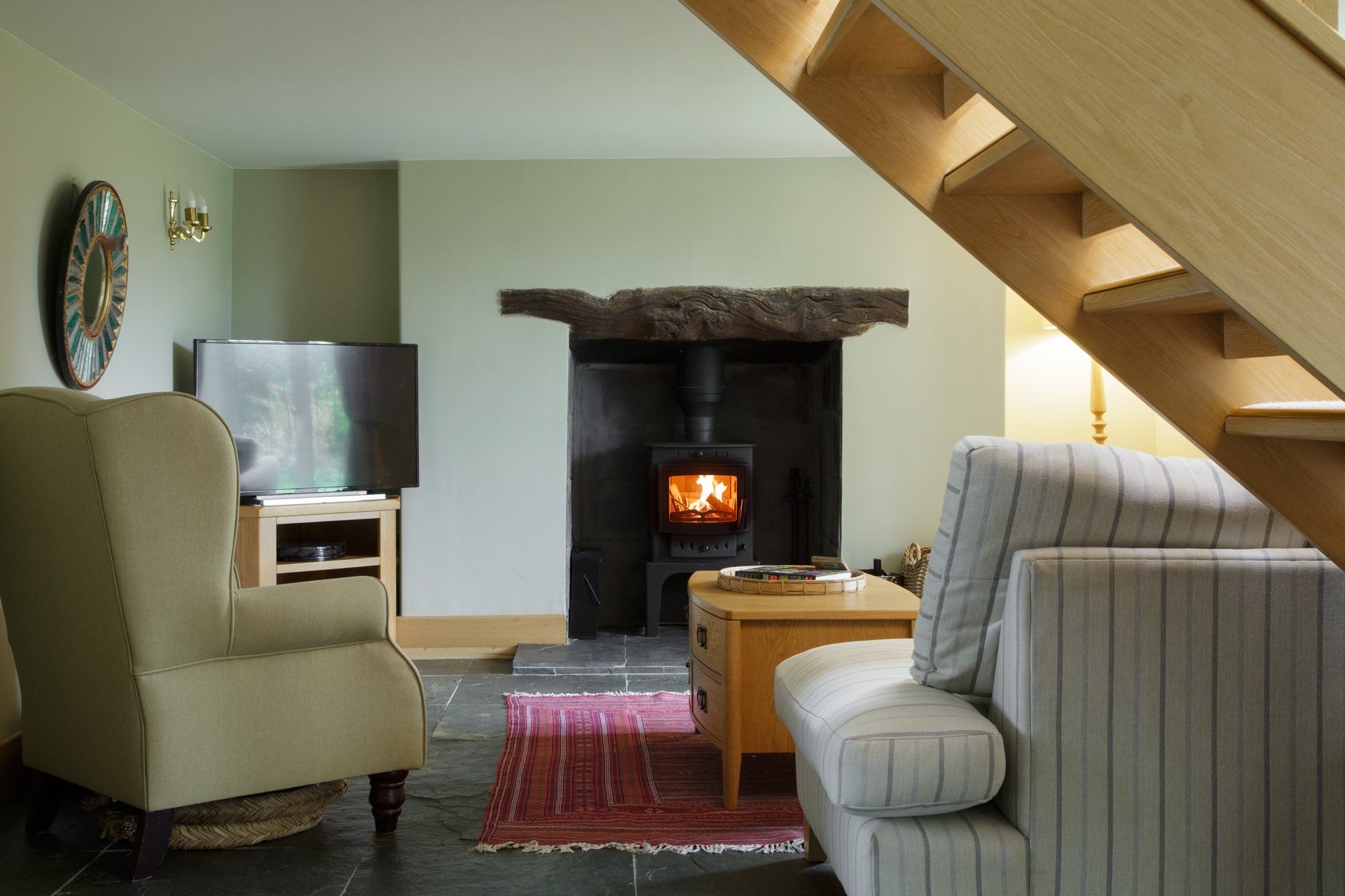 Inside, the cottage feels instantly welcoming. Underfloor heating throughout the ground floor, combined with a cosy log burner, ensures a warm and comfortable atmosphere in every season. Thoughtfully furnished and full of character, the living spaces strike a lovely balance between comfort and calm, making it an ideal home from home for couples, families or friends.