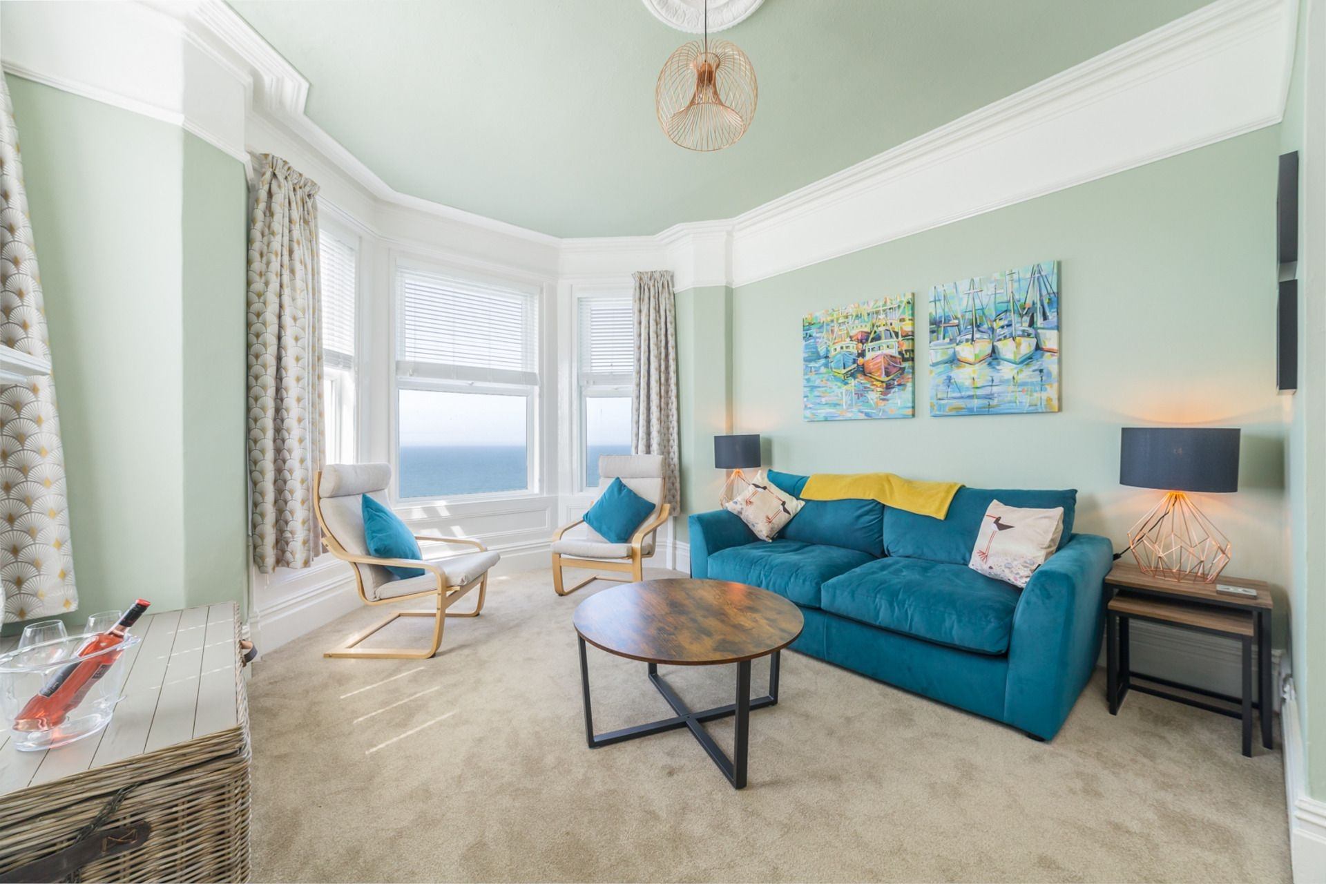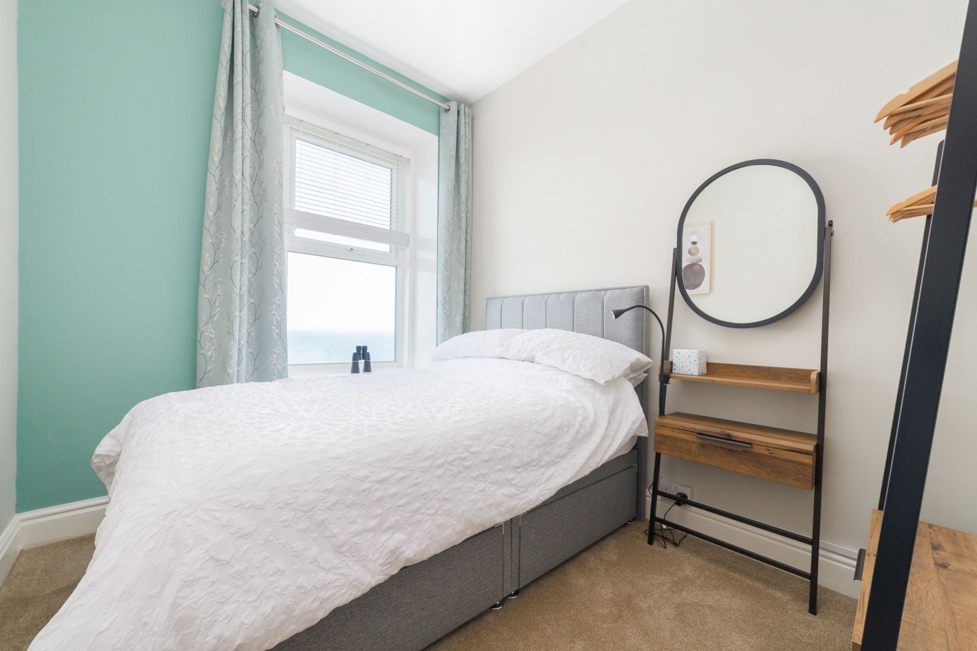 \nA fabulous view as its a first floor apartment. \nEverything was brand new. Spacious rooms, well equipped kitchen, large bathroom. \nSmall touches like a fruit loaf, butter, jam, milk, eggs provided. Bathroom toiletries superior brands. Beautiful bedding and bathrobes. \nI stayed with my partner, and as we live in the south of the island it was great to do some walking further north. \nPlenty of pubs and eating places and chip shops. \nI would recommend this to anyone.\nIsland escapes always have a high standard. \nAnd binoculars provided so you can look out to sea. \n