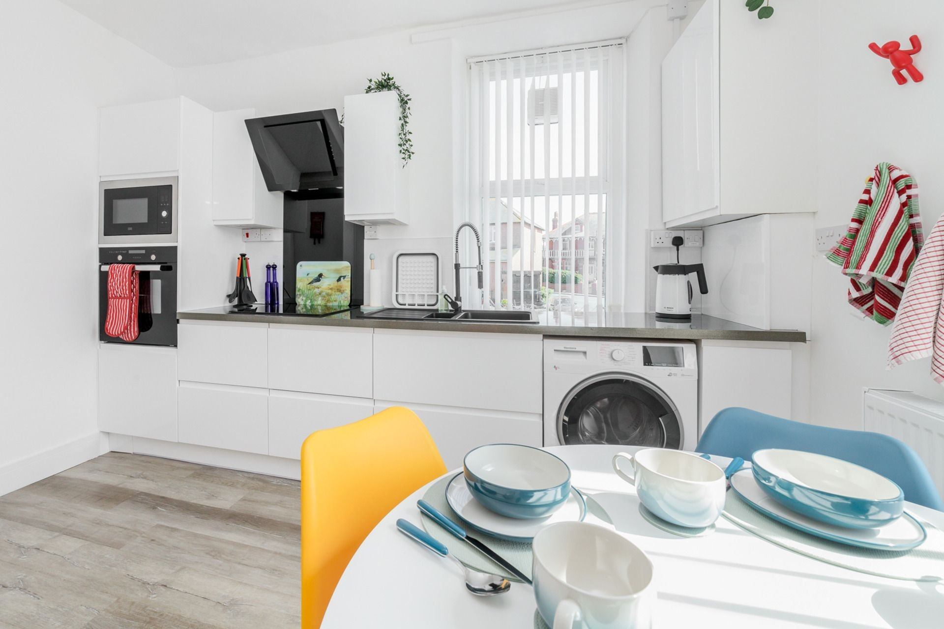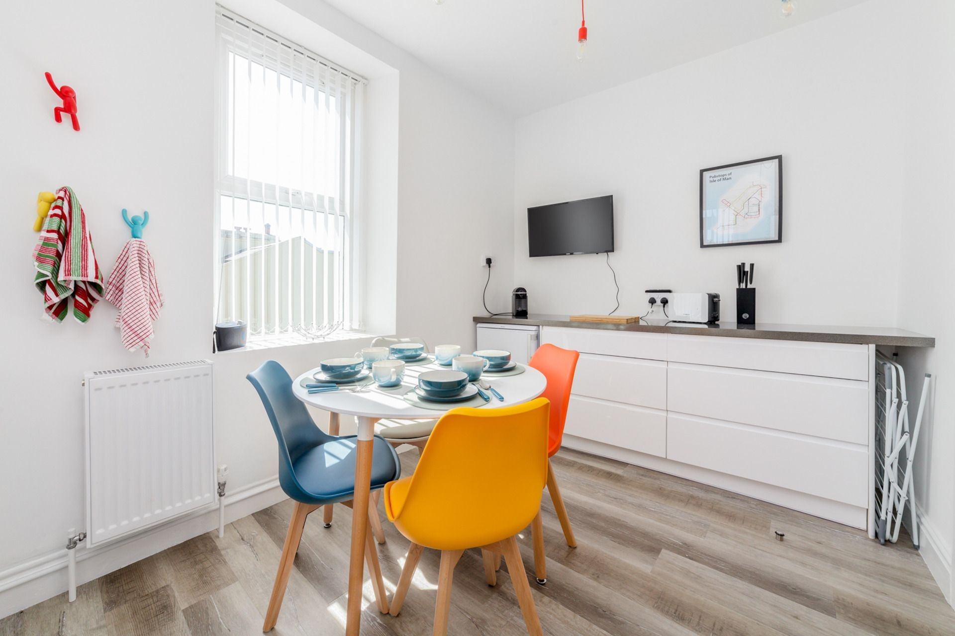 Wonderful, tastefully decorated apartment with a very spacious and modern bathroom and a large kitchen with dining table equipped with everything necessary. The beds are very comfortable and the bedrooms are furnished with everything necessary. The living room with large TV is very cozy! The view of the Irish Sea and Peel Castle is simply stunning! We can really recommend the apartment! We really loved it! Supermarket, restaurants, museum, cafe, stores ect. is in walking distance. An excellent place to spend a vacation!\n