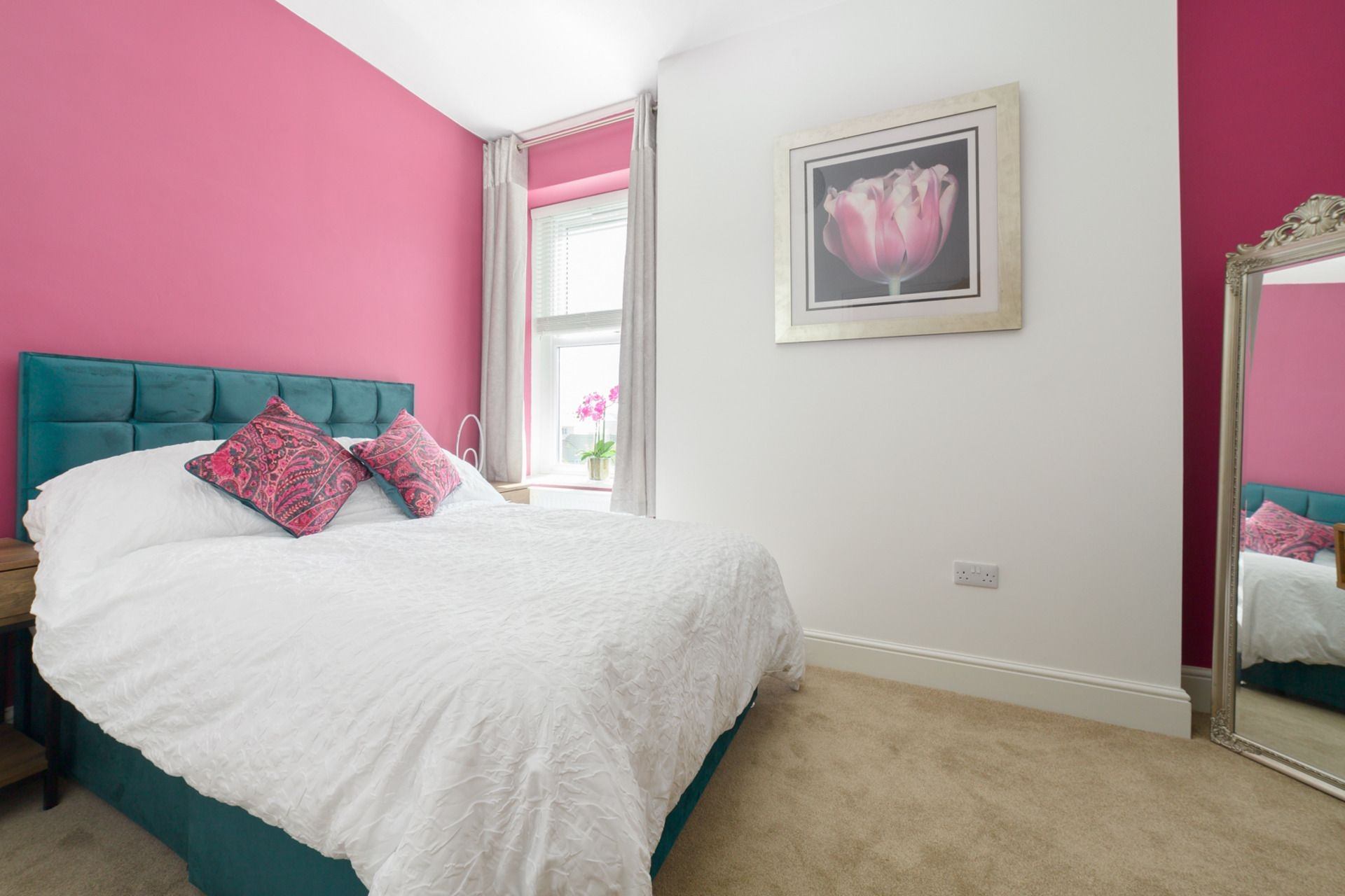Bedroom 2: Small 4 foot double bed (to be used as a single bed), bedside tables, hanging space