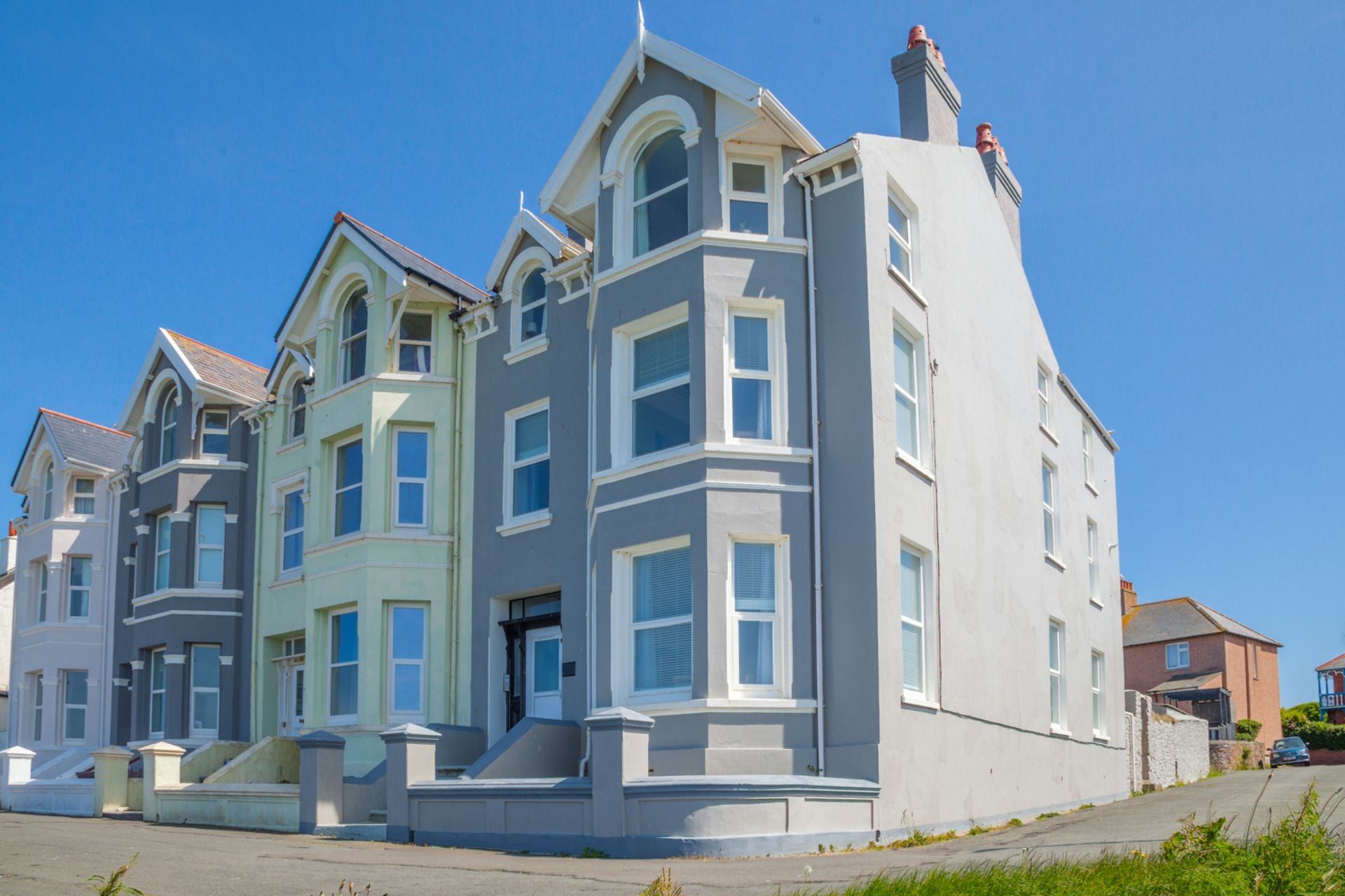 This was our first visit to the Isle of Man and we wanted to get to all the major Manx heritage sites, as well as the many scenic places. Peel is very well located for doing this, being halfway down the west coast. Nowhere was more than a 40 minute drive away and the roads were very quiet. \n\nWithin Peel, Aer Varrey is really well located for a panoramic view over the castle and beach. We had a glorious sunset every evening. There is a paved walkway down the hillside to reach the town. Some with walking issues may struggle to get back up, especially after a meal, but the meandering path does take a lot of the steepness off the walk.\n\nWe had a glorious week\'s weather and really enjoyed our time in the apartment - it had so many thoughtful touches, such as a fresh sourdough loaf, butter in the fridge, a variety of small pots of jam; there was milk in the fridge too and several types of tea bags and coffee, plus coffee pods for each day. Liquid soap was provided in the kitchen and bathroom, plus shampoo & conditioner in the bathroom. The apartment was very spacious and spotlessly clean. Highly recommended !