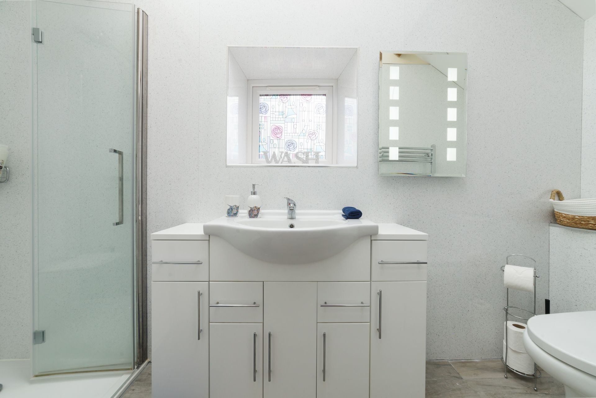En-Suite Bathroom: Walk-in shower with shower seat, WC and wash hand basin.