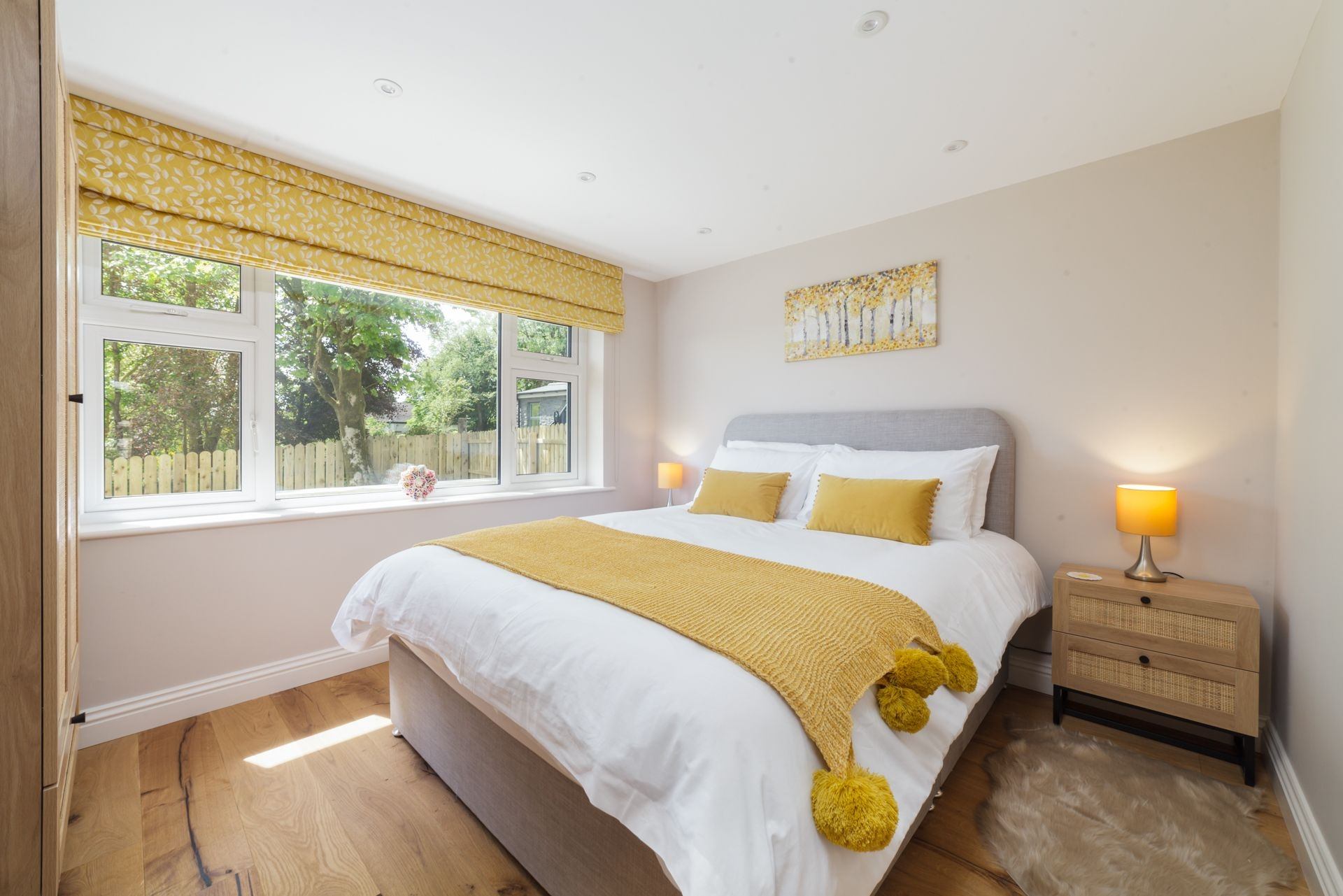 Bedroom 1: King size bed, Smart TV, bedside tables and wardrobes.