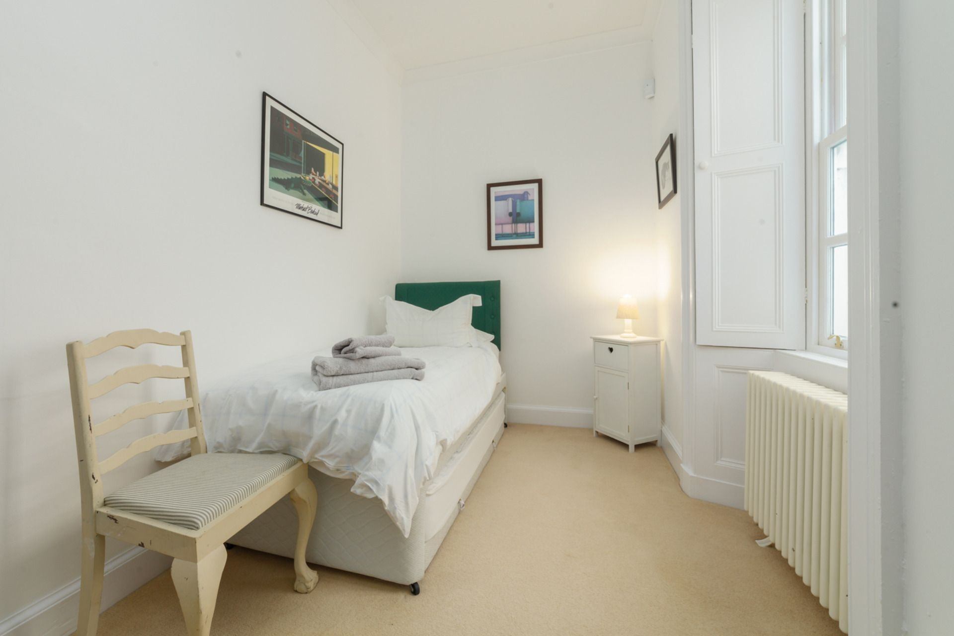 Bedroom 2: Single bed, wardrobe and bedside table.