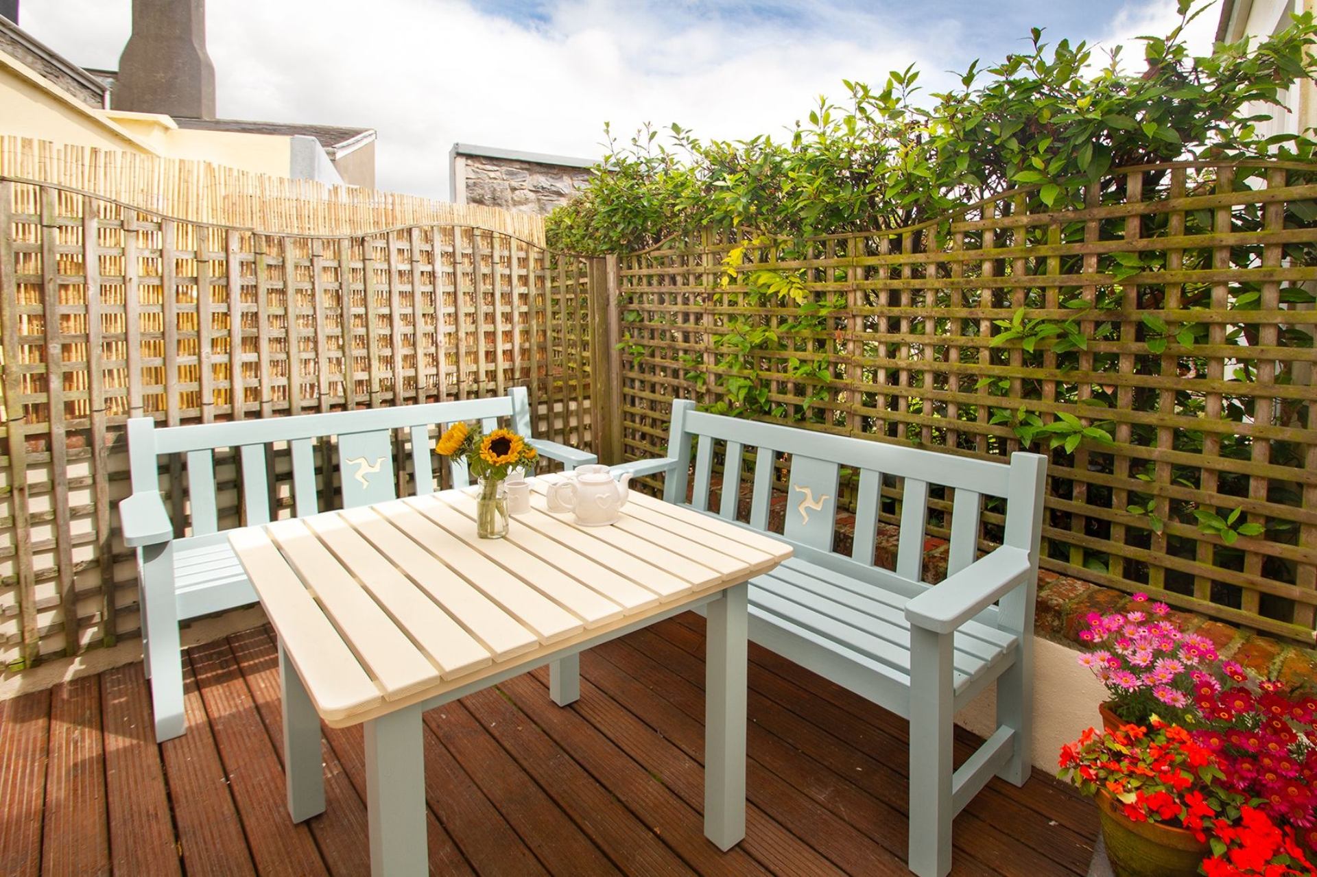 Mariners Cottage is a lovely old cottage , which lhas been tastefully extended and modernised. It is excellently placed, in the centre of Castletown , near the central square , castle and harbour. You can see the from the bedrooms . \nThere is some outdoor seating and table too. The skylight and stable door at the back are nice features. \nI did have a few quibbles , which the owners and Island Escapes responded to very quickly. \n\nOn the downside , I do think it very expensive. I also think providing no washing powder and only 3 dishwasher tabs , especially considering the cost of rental , was not generous. They did provide more dishwasher tabs , as I complained. I left some in the box to be of help to other customers!