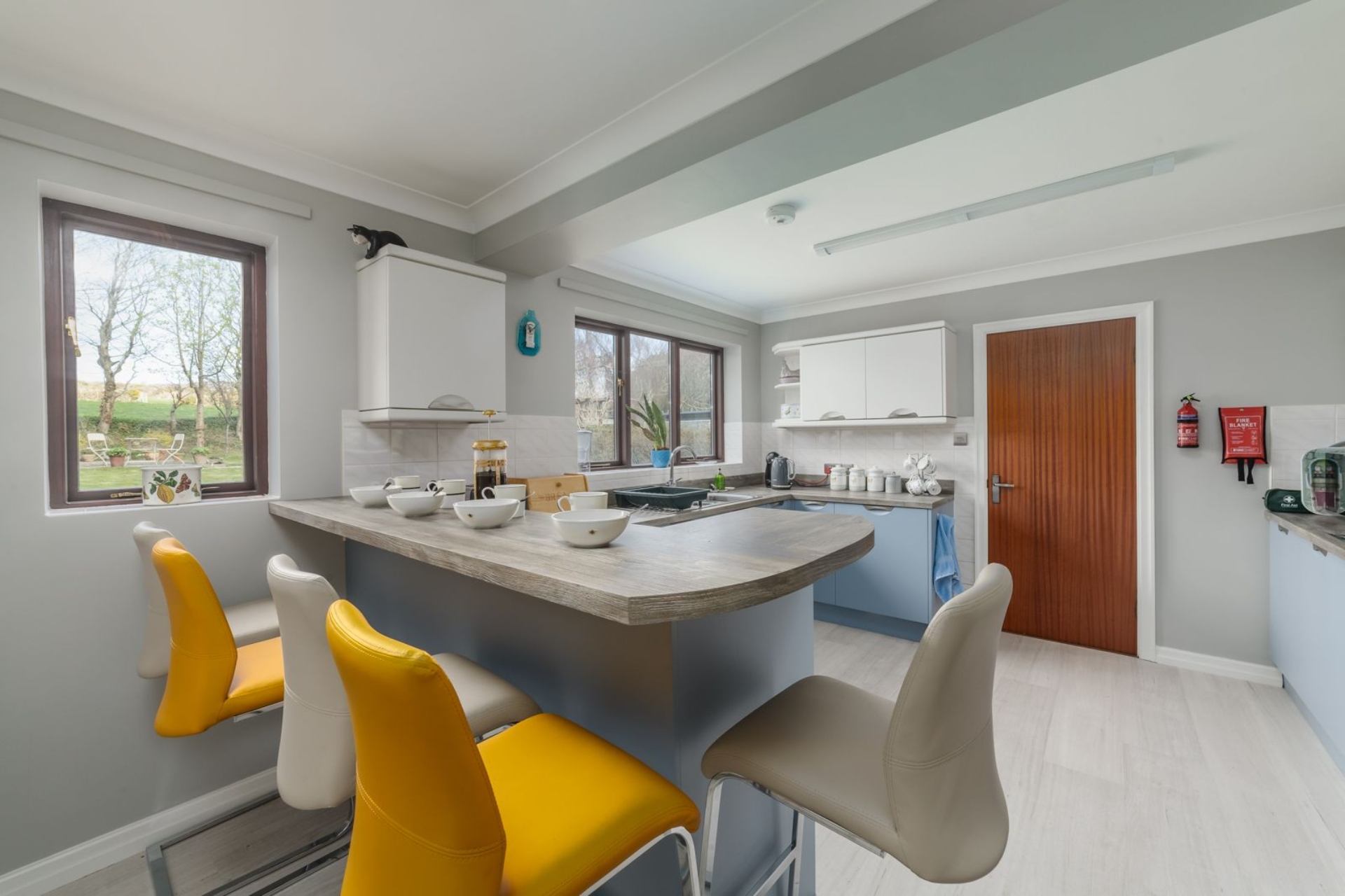 Kitchen: Well equipped containing cooker, hob, microwave, kettle, Dolce Gusto coffee maker, cafetiere, dishwasher, fridge and freezer. There is seating for 5 at the breakfast bar.