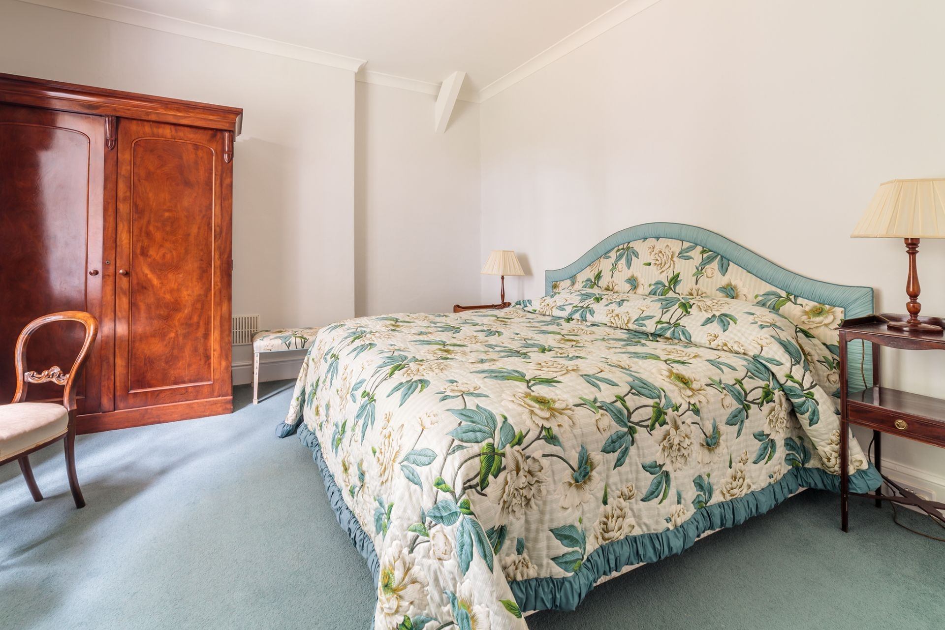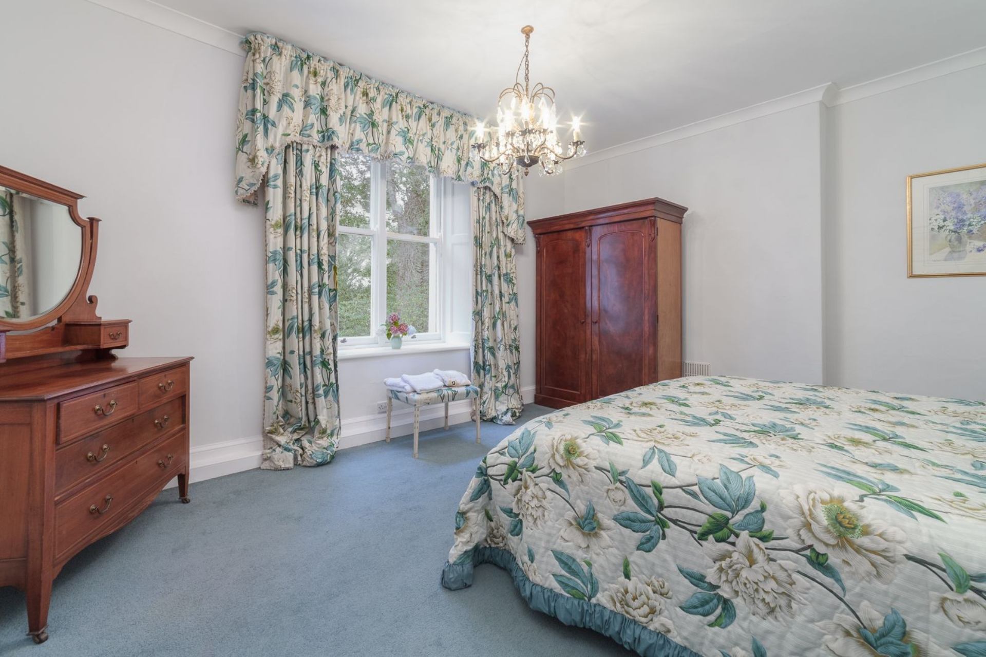The property has a spacious feel, with high ceilings and fine traditional decor. The master bedroom has a large king sized bed and plenty of space, with a view over the garden and lawn. The property would suit a couple or small family looking for a central base to explore the island, close to the island's main amenities. For larger groups, book it alongside Deaks Cottage and Woodcroft, which both sleep 4, and are set in the same grounds.
