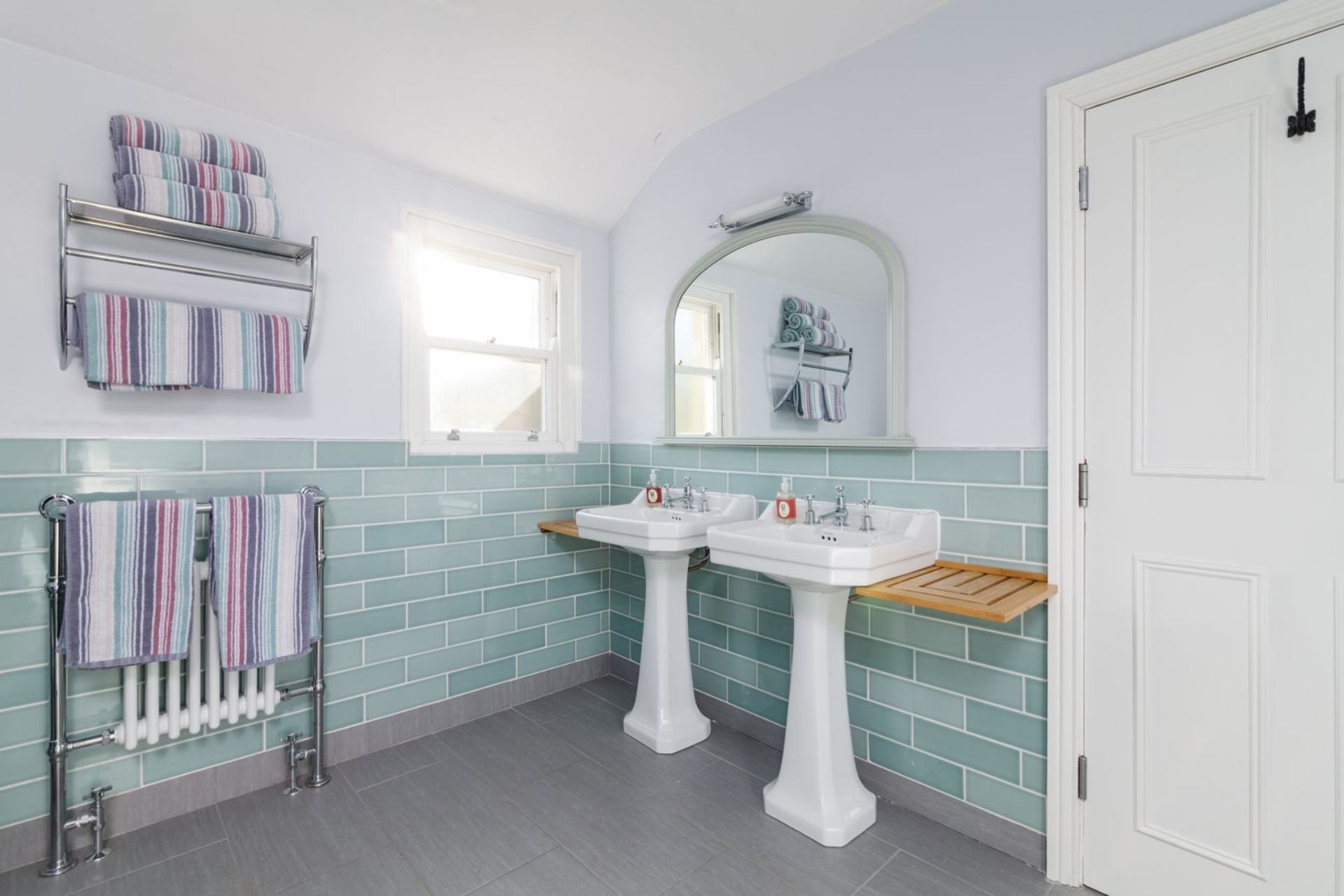 Family Bathroom: Bath with shower over, WC and two wash hand basins.