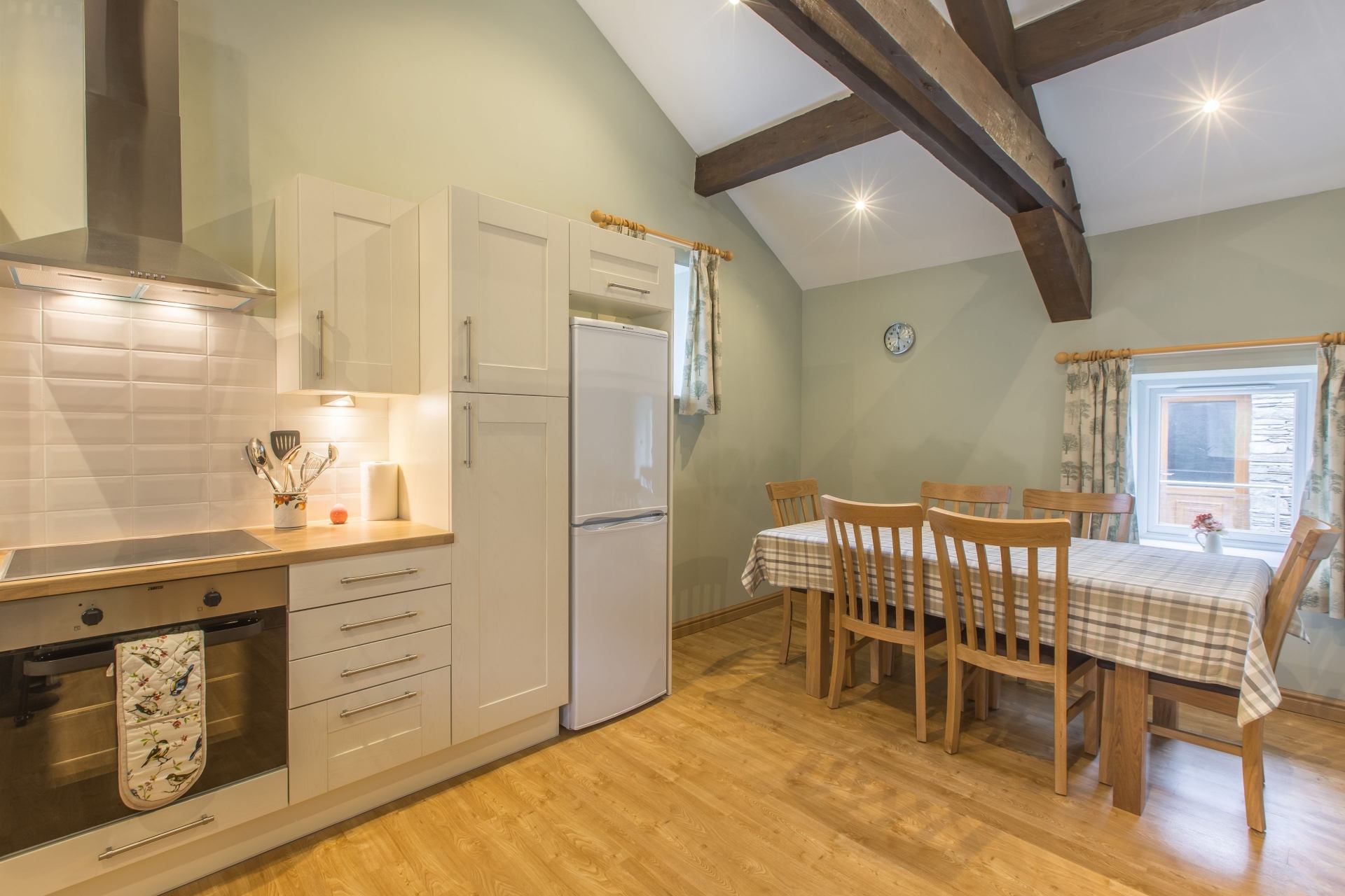 Kitchen/Dining area: Located on the first floor, Electric oven, electric hob, fridge, freezer, washing machine, dishwasher, microwave, dining table & six chairs