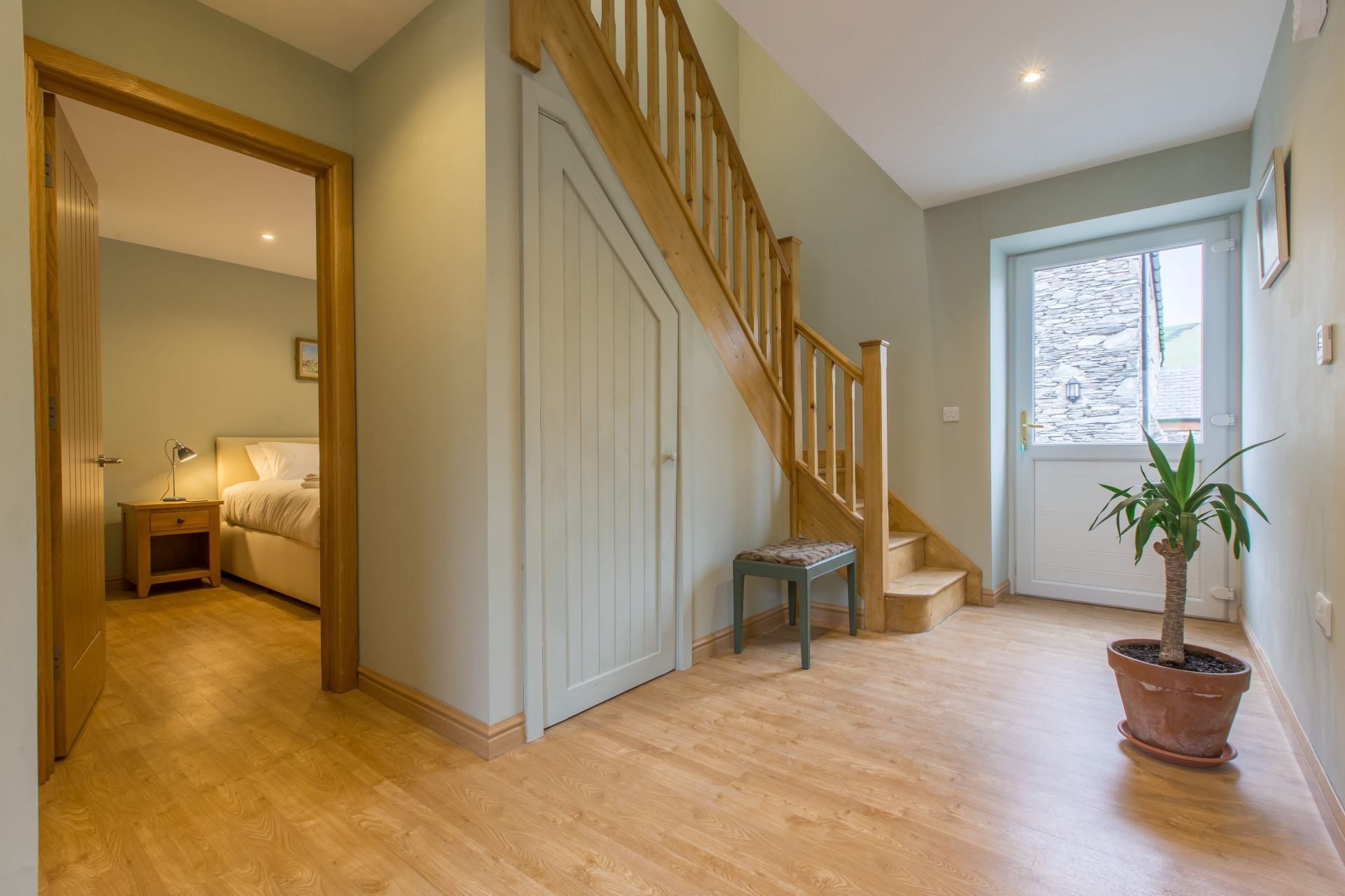 After such a long period of restrictions here in the north of England and being prohibited from visiting our daughter, her husband and our grandchildren for 16 months we needed this holiday to be fabulous and it was. The property and the location are beautiful. Our party comprised 4 adults and 2 under 5\'s and our only slight negative was that as the kitchen and living room were upstairs, we could have done with a safety gate at the top of the wooden staircase. That aside we could hardly fault the place.
