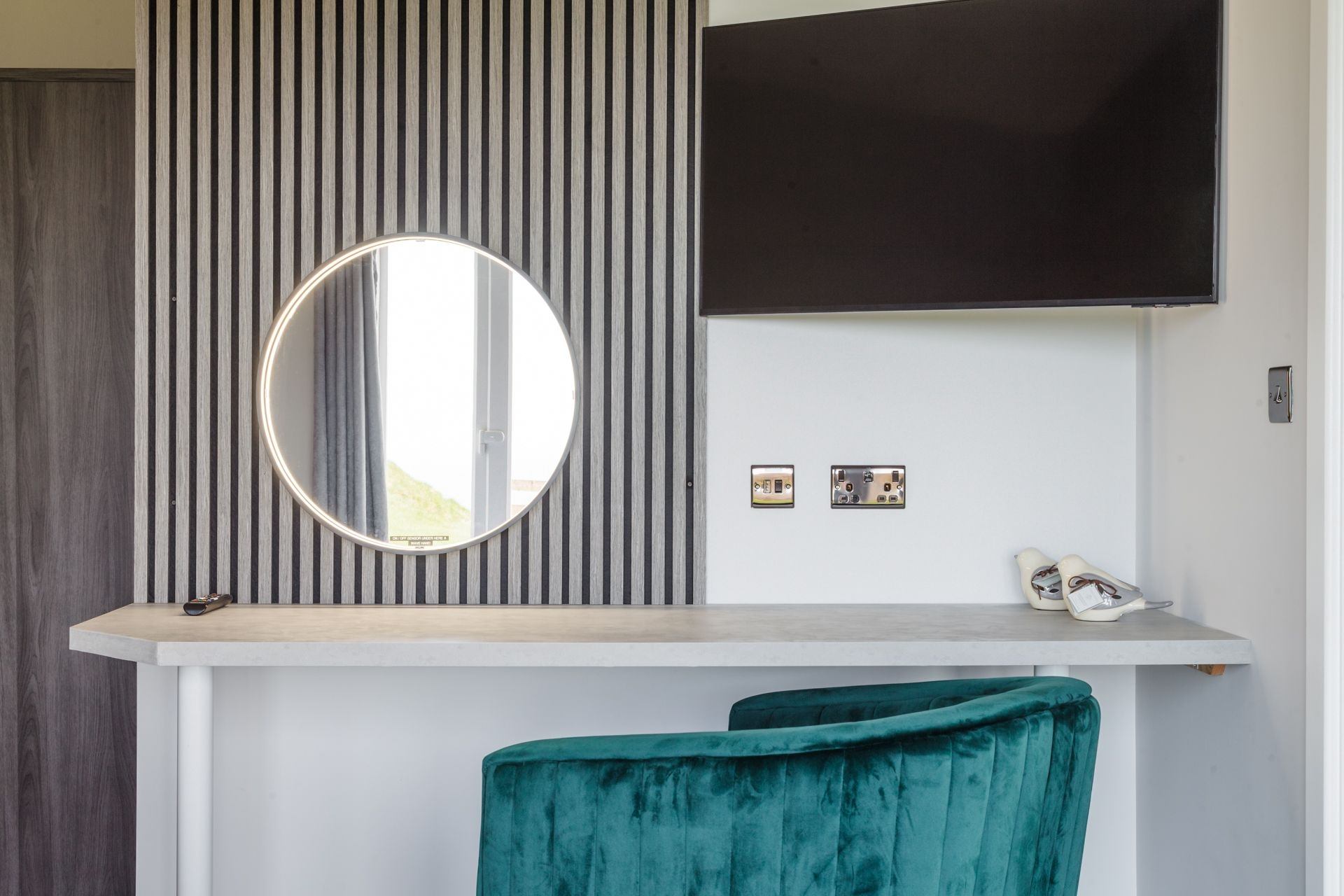Clearly a very recent project.\nThe property is very clean and well done. \nPlenty of parking, very secure location. \nAmazing views across the mountain and coast. \nAfter arriving at 2am due to delayed ferry it was a great gesture to have milk, tea, coffee, bread and butter left for arrival. \nWe were on bikes which made it easy to get around the island, not far from the creg to get on the tt track. \nThere is a bus stop within half a mile we used once. \nOne improvement I would recommend would be to add a sign on the main road for moaney woods. Was a little awkward to find in the dark and rain on arrival and taxi drivers struggled to find it to pick us up. \n