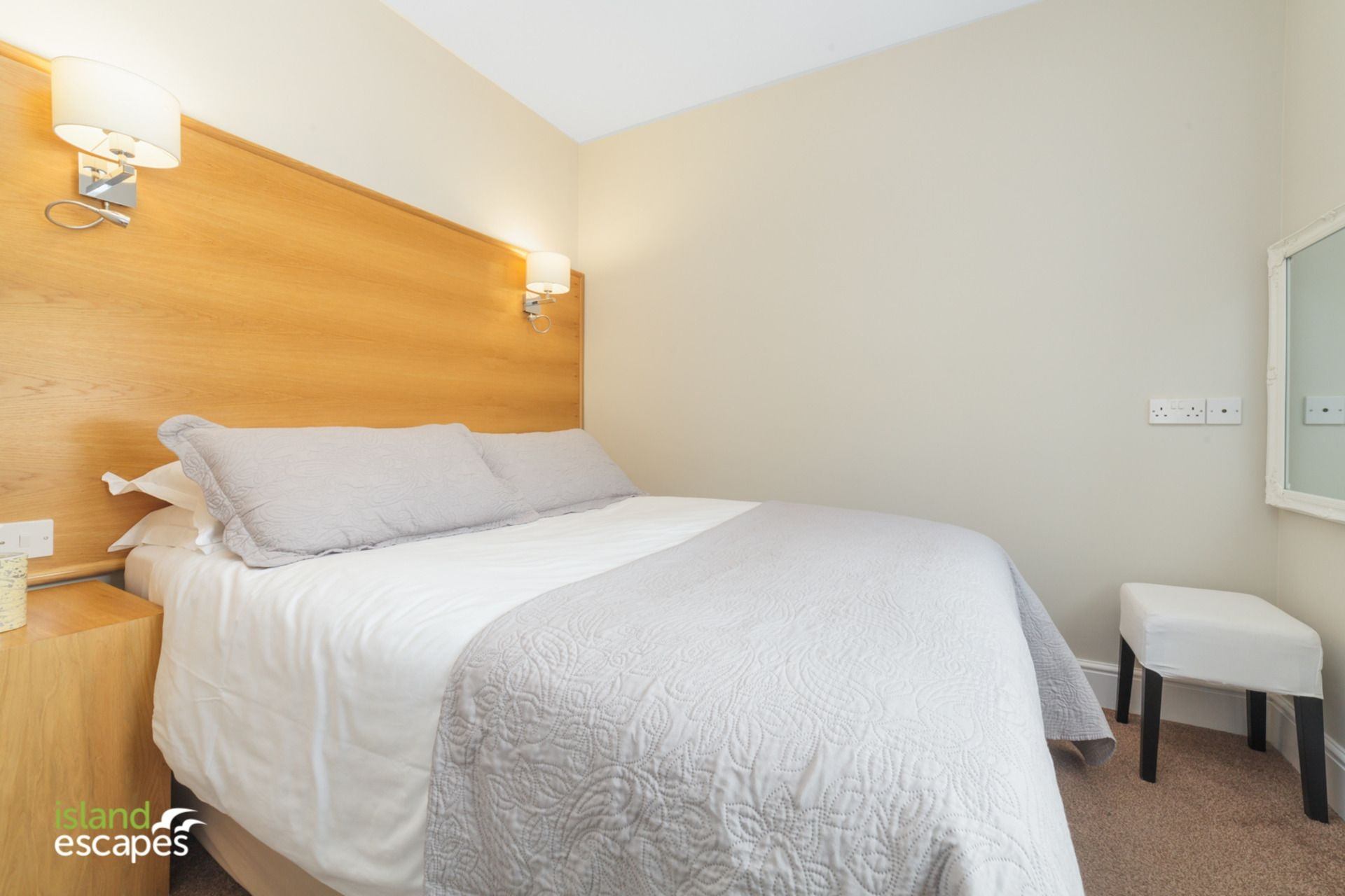 Bedroom 2: Double bed, bedside cabinets, built in wardrobe with pull out cubes.