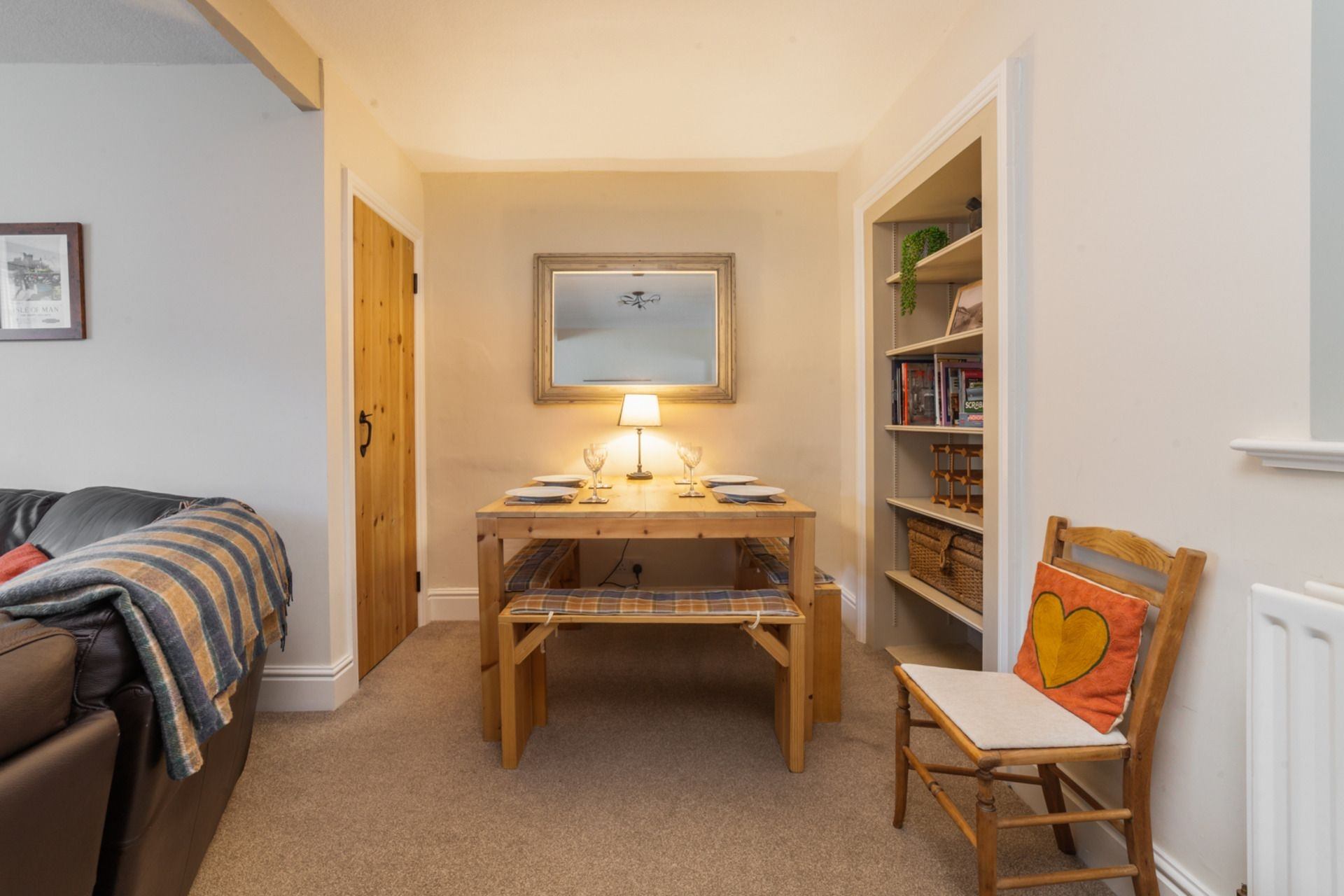 Lounge & Dining area: Log burner, one large L-shaped sofas, TV and dining table to seat four.