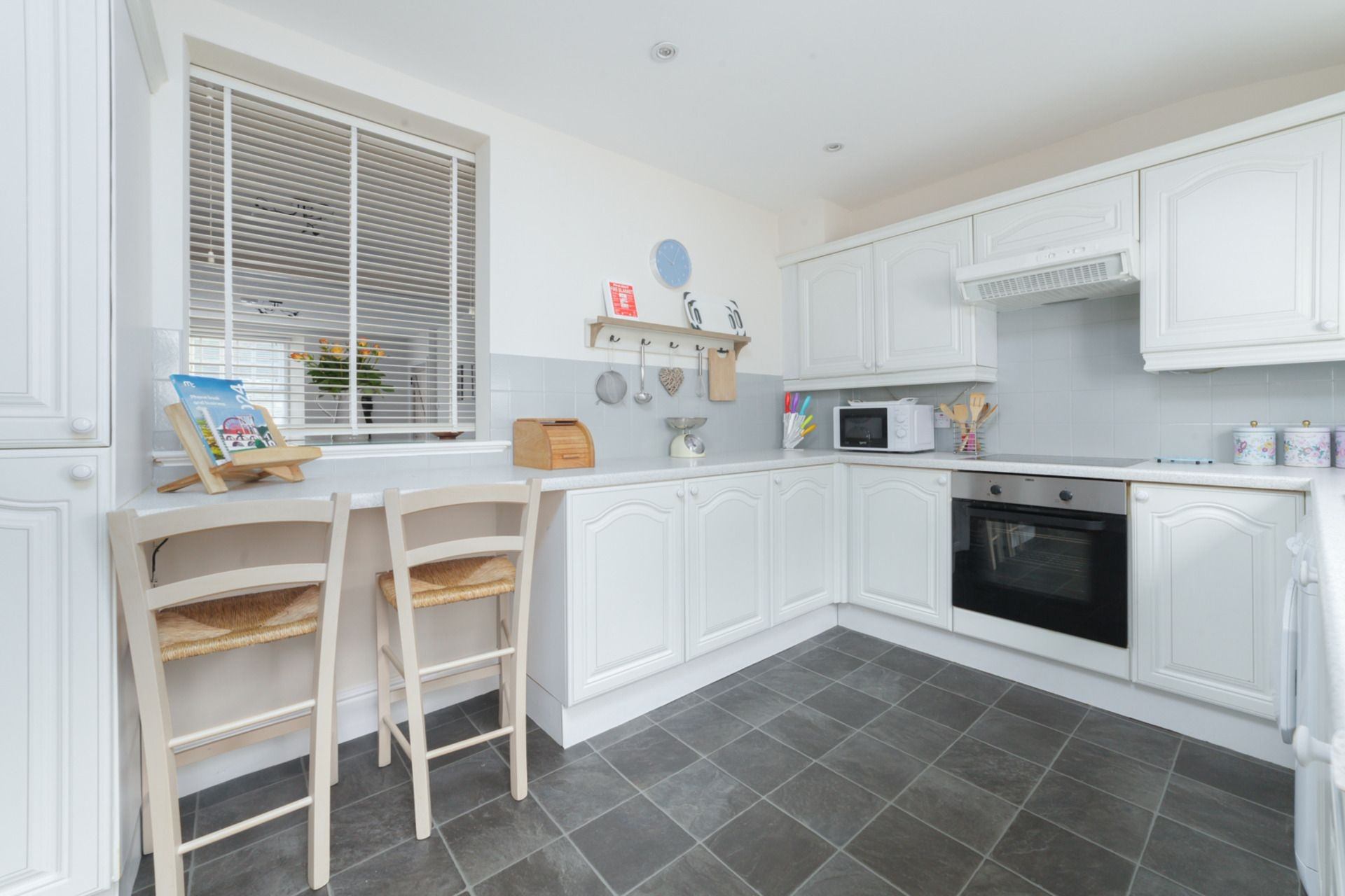 Kitchen: Well-equipped kitchen, including hob, fridge, freezer, oven, microwave, washer/dryer and breakfast bar with two stools.