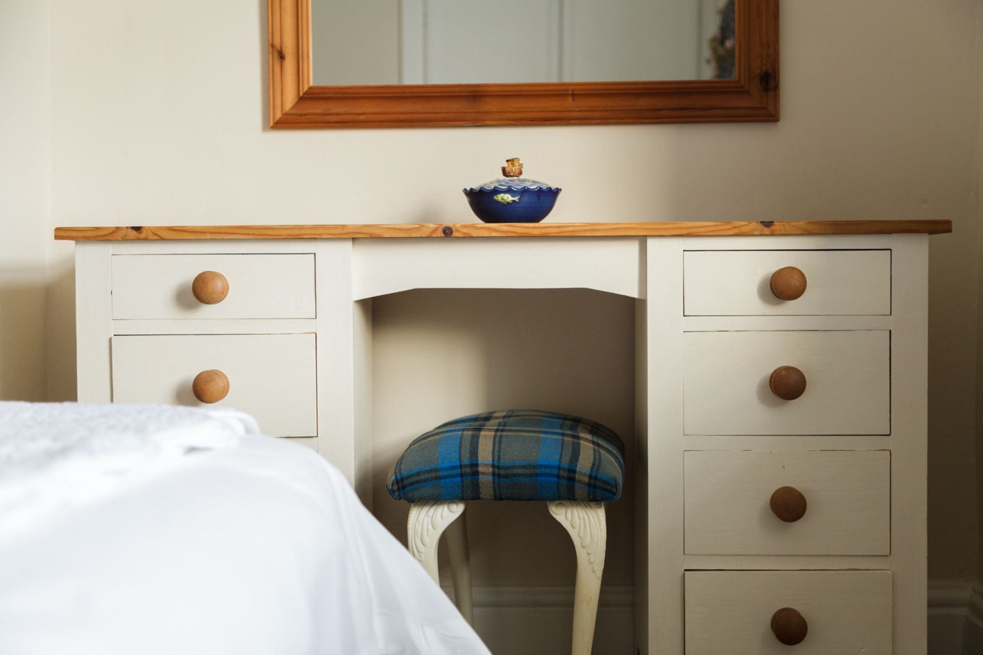 Bedroom 2: Double bed, bedside table & lamp, wardrobe and small dressing table.