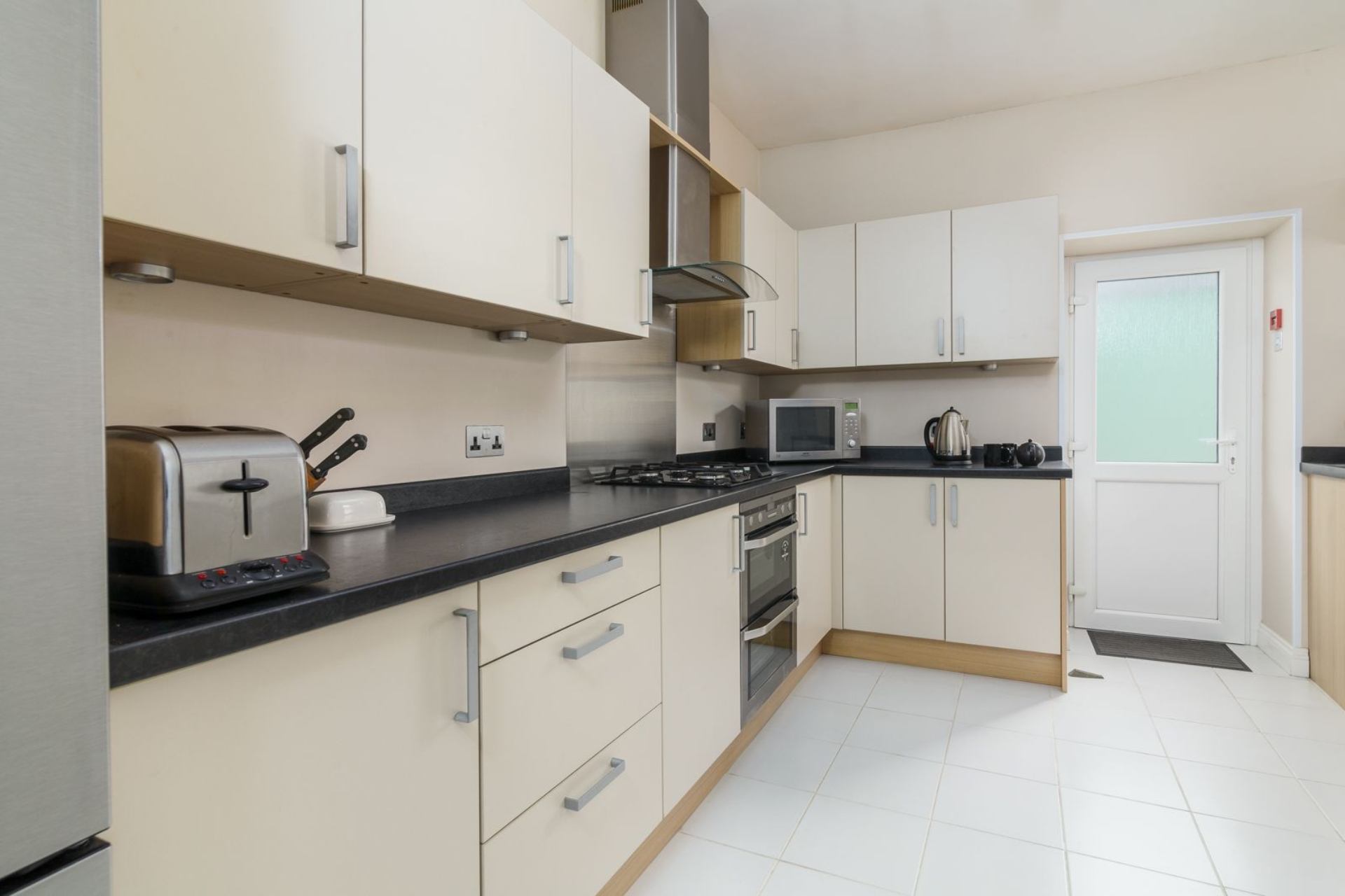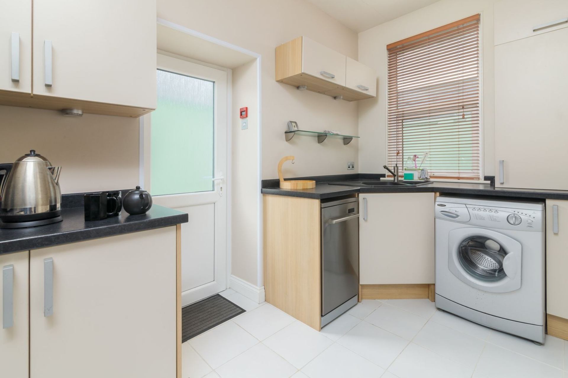 Kitchen: Electric oven, electric hob, fridge, freezer, washing machine, dishwasher, microwave, dining table & four chairs