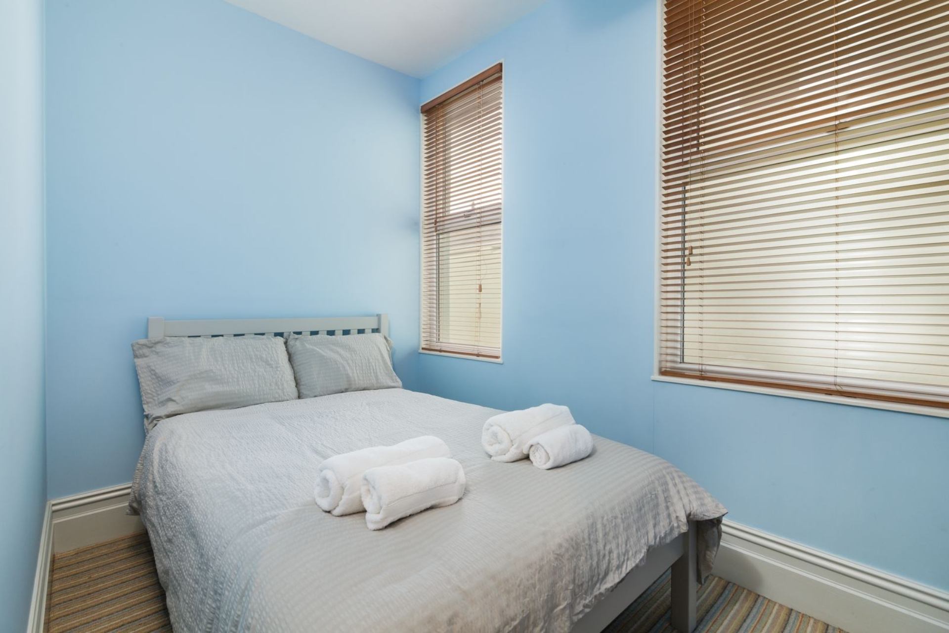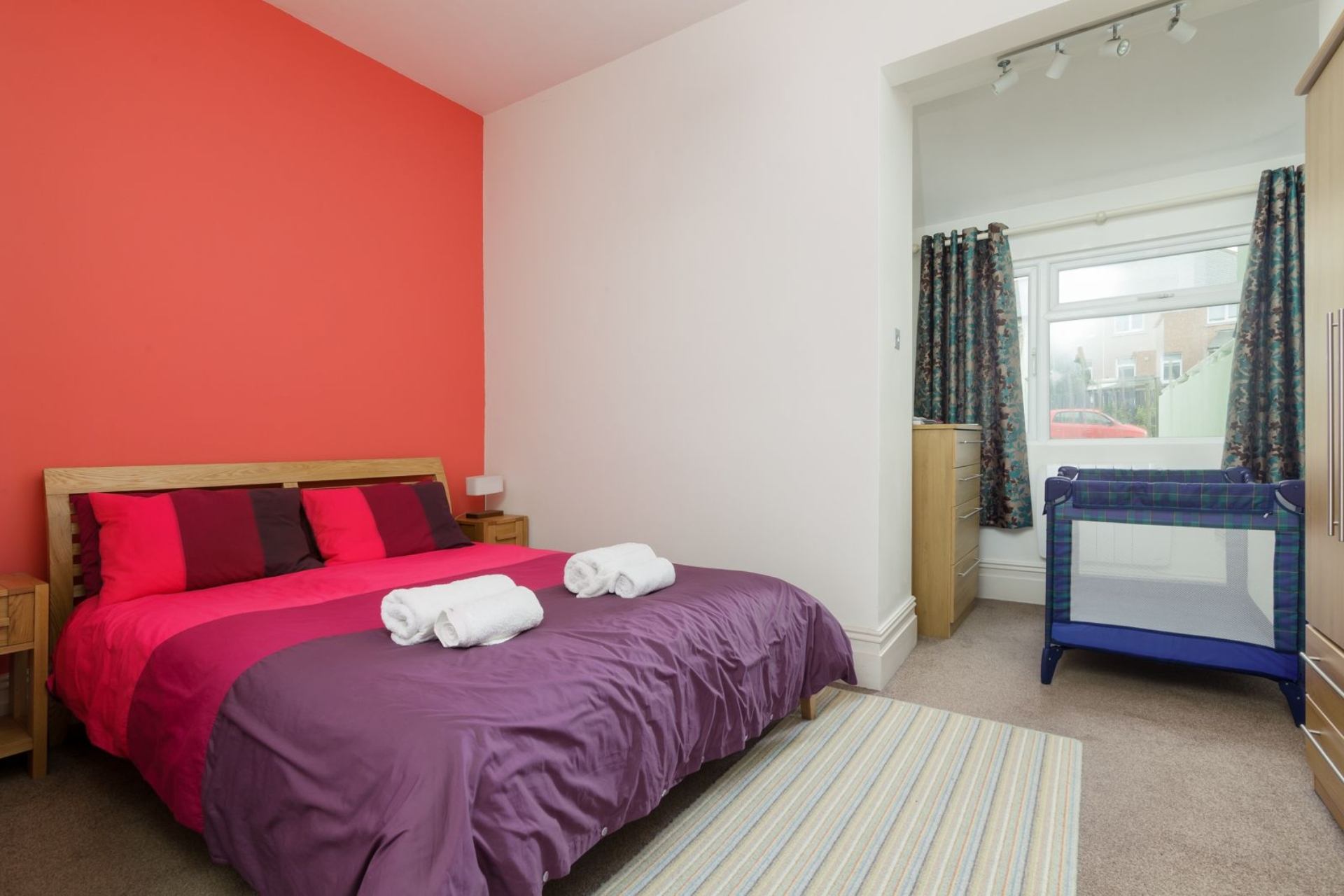 Bedroom 2: Double bed, bedside cabinets, wardrobe