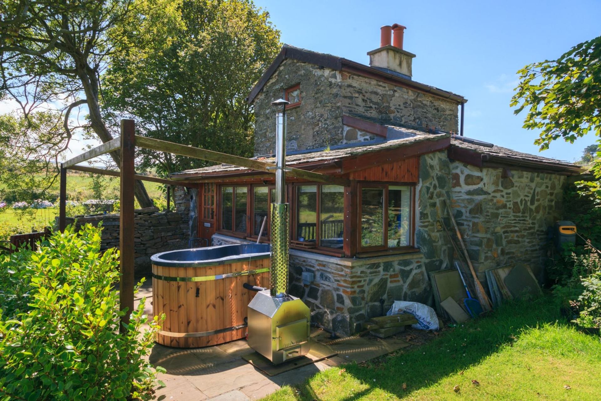 The conservatory is bright and airy, looking over the garden and patio where the wood fired hot tub is. An excellent shower room completes this charming, tiny cottage.