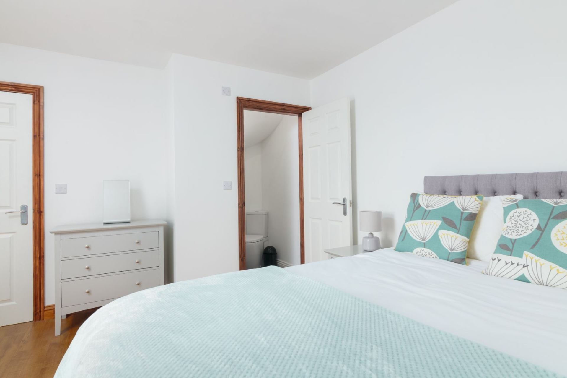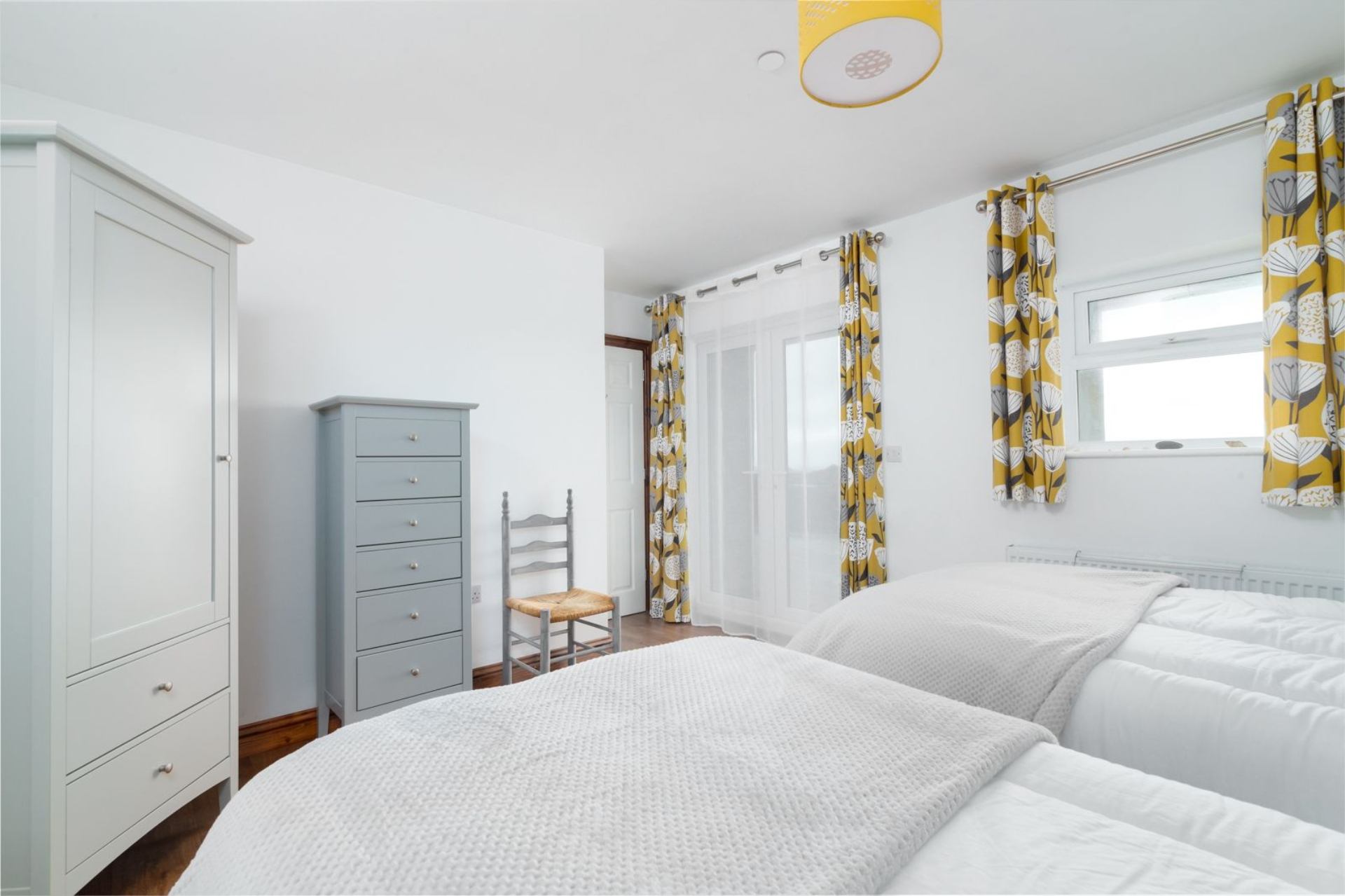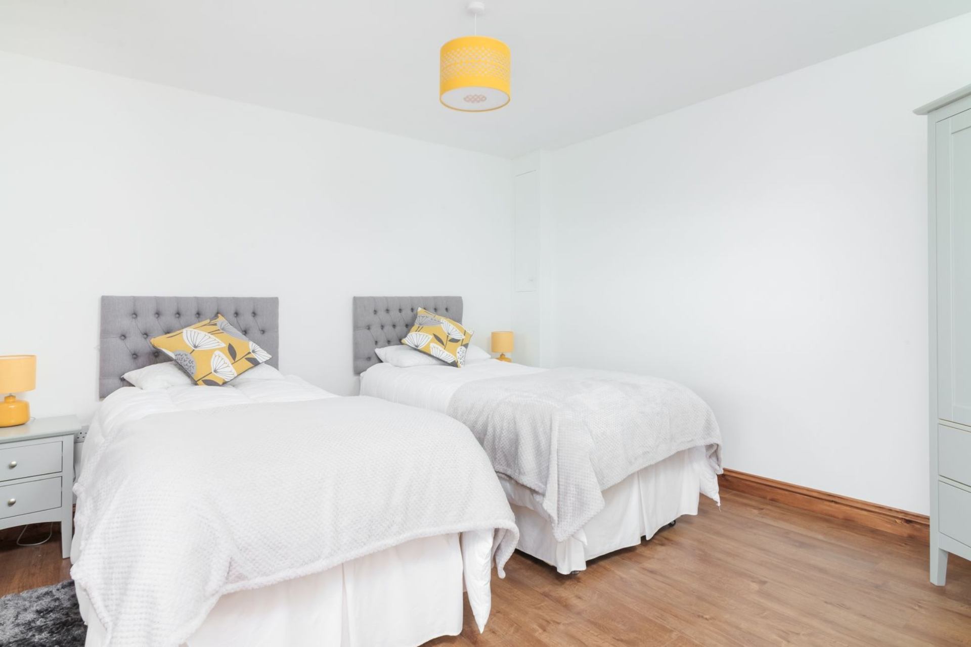 Bedroom 2: Twin beds, bedside cabinets, chest of drawers, wardrobe