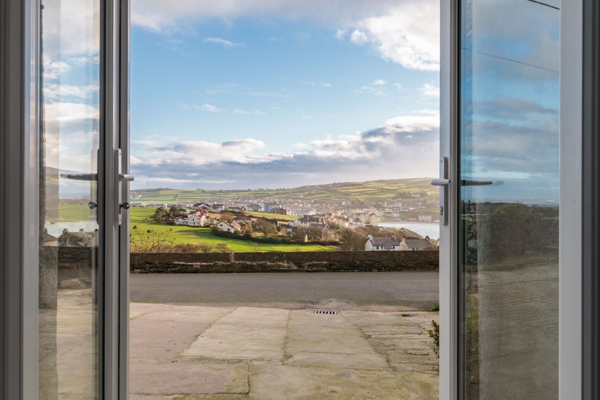 Enjoy panoramic views over the fields and golf course to Port Erin and sea views over the south west coast of the Isle of Man towards the Calf of Man. South facing, the property has an outdoor area for seating which is also a real suntrap. There is also private parking for 2 vehicles.