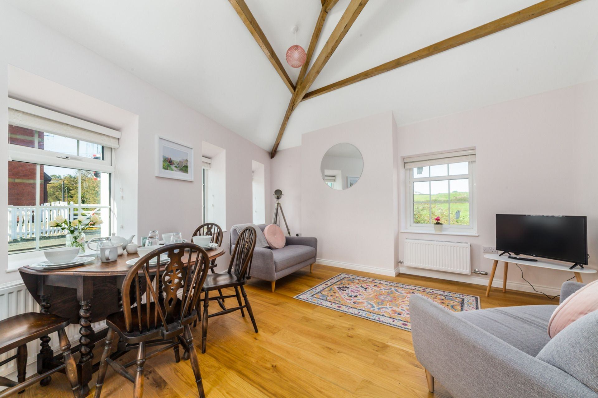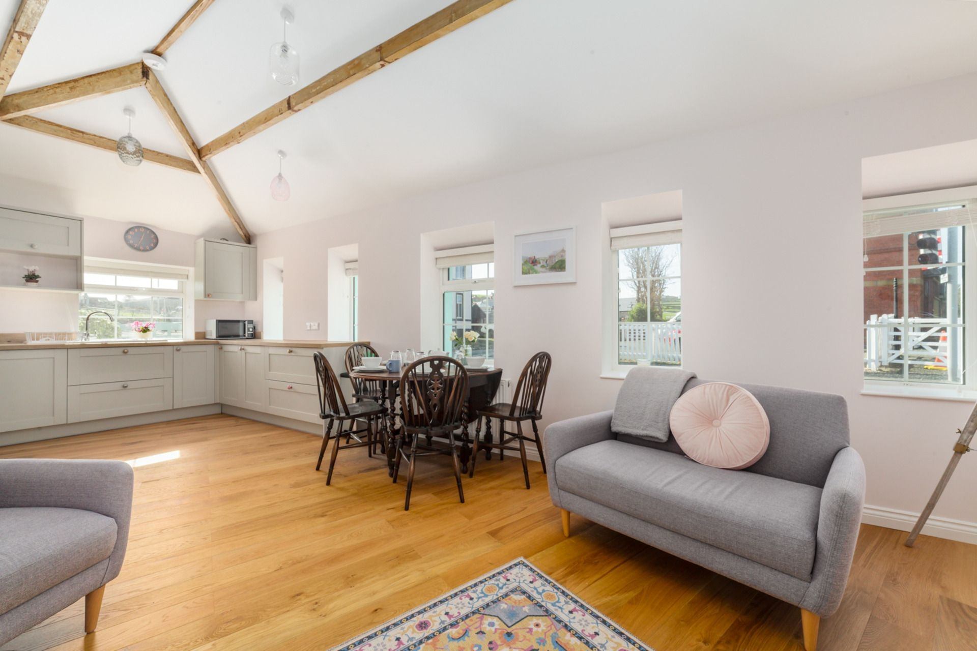 We really enjoyed our stay at this cottage. Very unusual as it is alongside the railway but it was fun to see the steam trains passing. Unless you are a particularly late riser you won\'t be bothered by the trains.\n\nWe had an issue with the handrail on the 3 stairs up to the main living area but this was resolved very quickly to our satisfaction.\n\nWe had our small dog with us and it was great having the enclosed garden meaning we could let her out first and last thing without having to have her on lead. There is a lawn and outside seating area which we didn\'t really use as the weather wasn\'t great.\n\nIt\'s a pity the 2 small sofas aren\'t comfier. Could do with something to sprawl on after a hard days exploring. They\'re fine though and if you\'re not a sofa sprawl-er you probably won\'t notice.\n\nSome table mats and coasters would also be a good addition to help keep the tables surfaces looking nice. \n\nAll in all we really enjoyed out stay. It\'s a great cottage and would be extra loved by railway enthusiasts.
