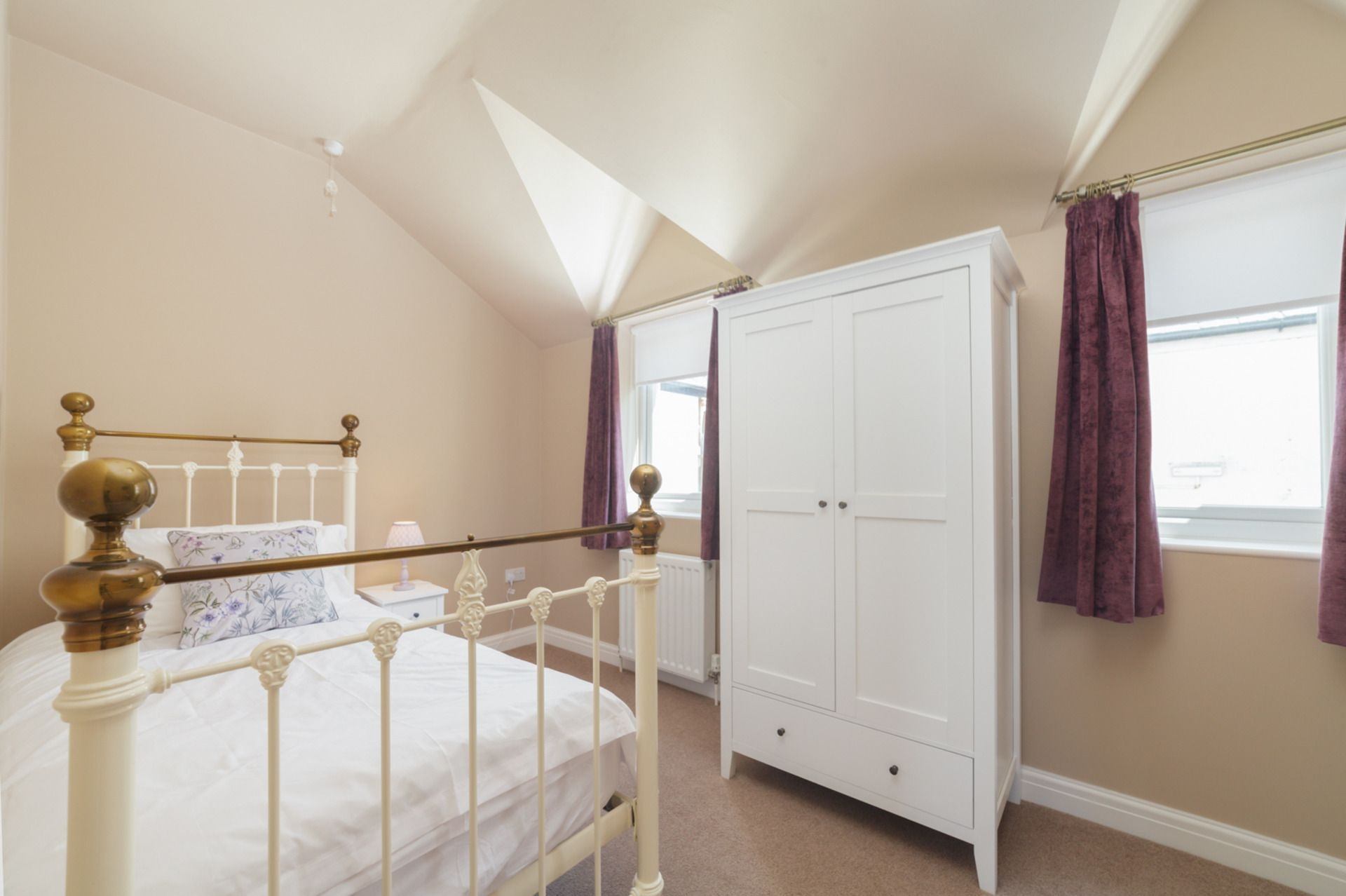 Bedroom 2: Single bed, bedside table, dressing table and TV.