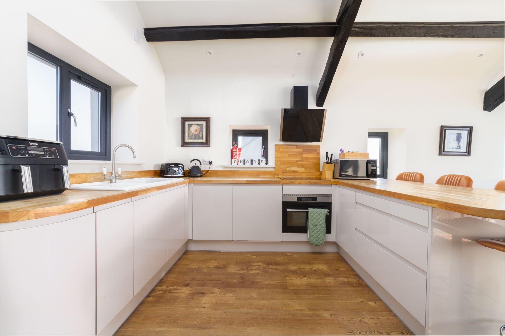 Kitchen: Well-equipped kitchen, including oven, Ninja Air Fryer and breakfast bar with 4 stools.