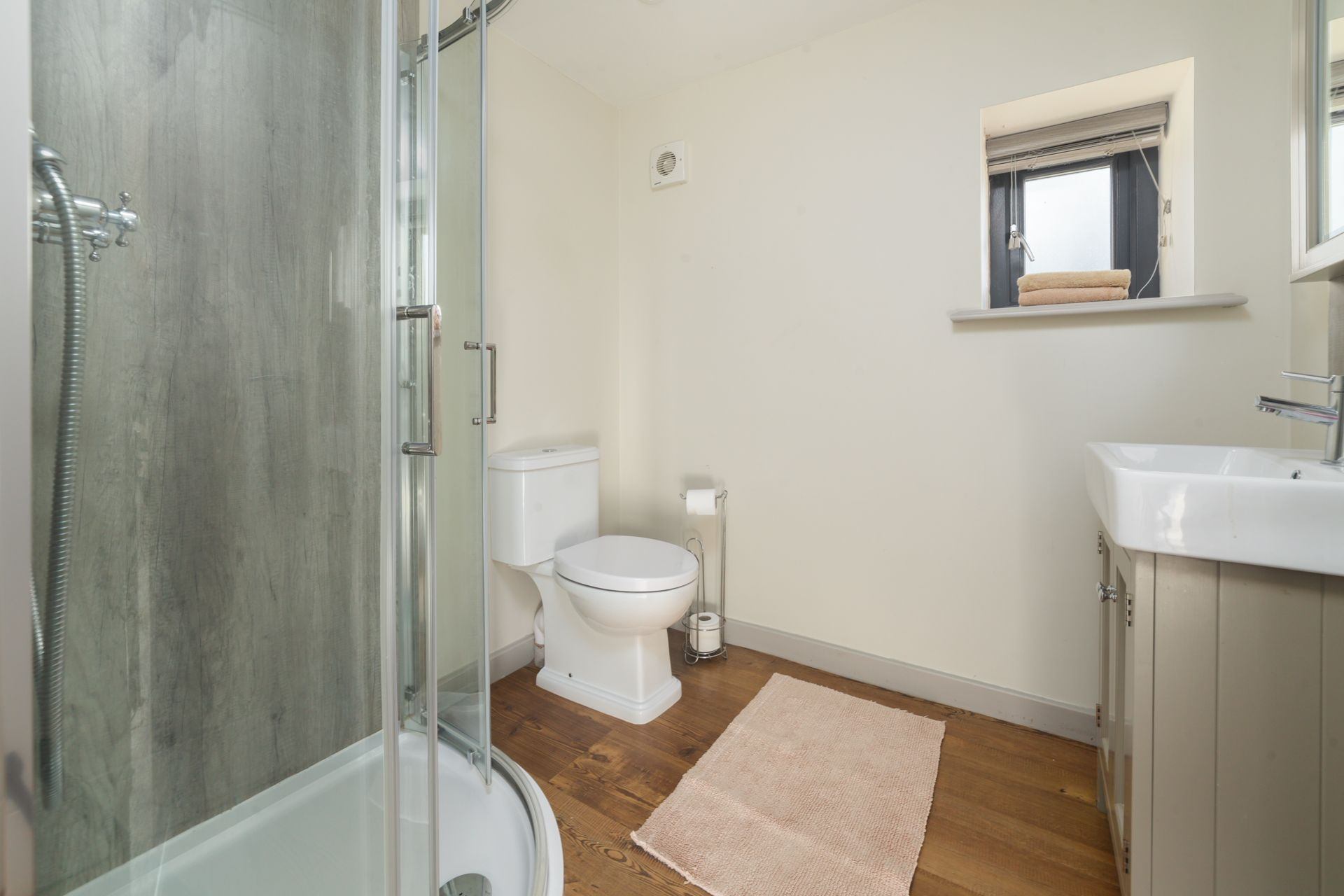 Bathroom: Walk-in shower, WC and wash hand basin.
