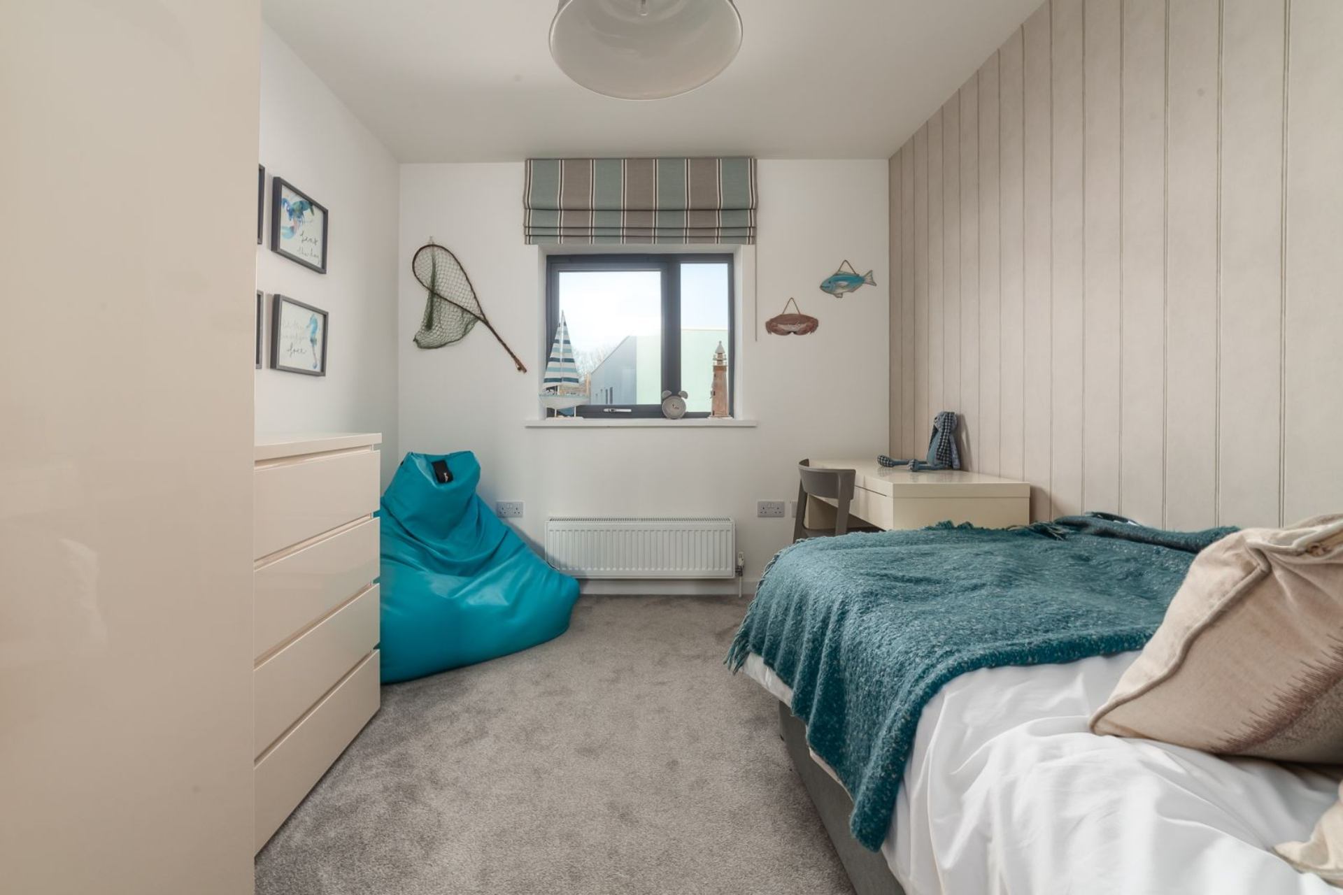 Bedroom 3: Single bed, wardrobe, chest of drawers, desk