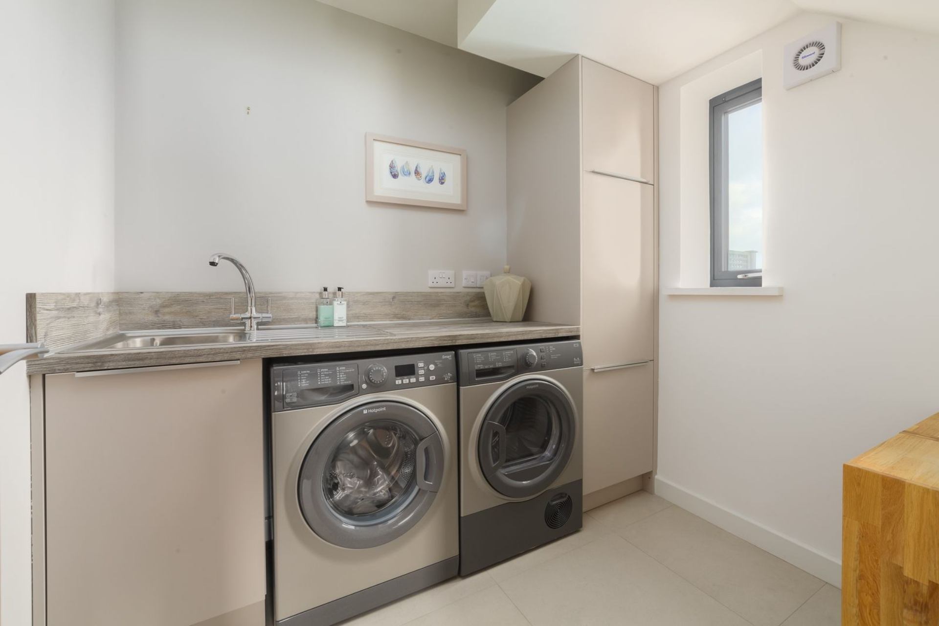 Utility Room: Basin, washing machine, tumble dryer