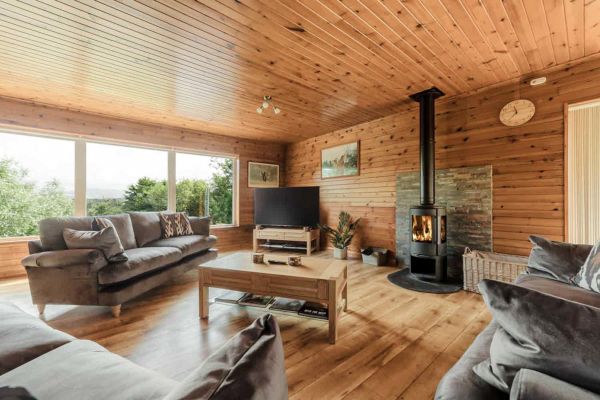 Glenfaba Lodge offers a warm, welcoming atmosphere with ample space for large groups. The open-plan kitchen and dining area are perfect for preparing and enjoying Christmas spreads together, while the roaring wood burner beckons for festive movie nights with the dog curled up at your feet.