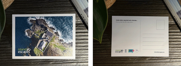 Want to try your hand at Manx? In the spirit of reviving our beautiful language, we’ve created postcards to inspire guests to write a heartfelt message in Manx, to send to a loved one or to treasure as a keepsake. On the back it reads ‘Voice ellan veg lesh ard-choraa…’ which translates to 'From a small isle with a big voice…' These are located in a selection of our cottages, awaiting you to pen your island memories in true Manx tradition.
