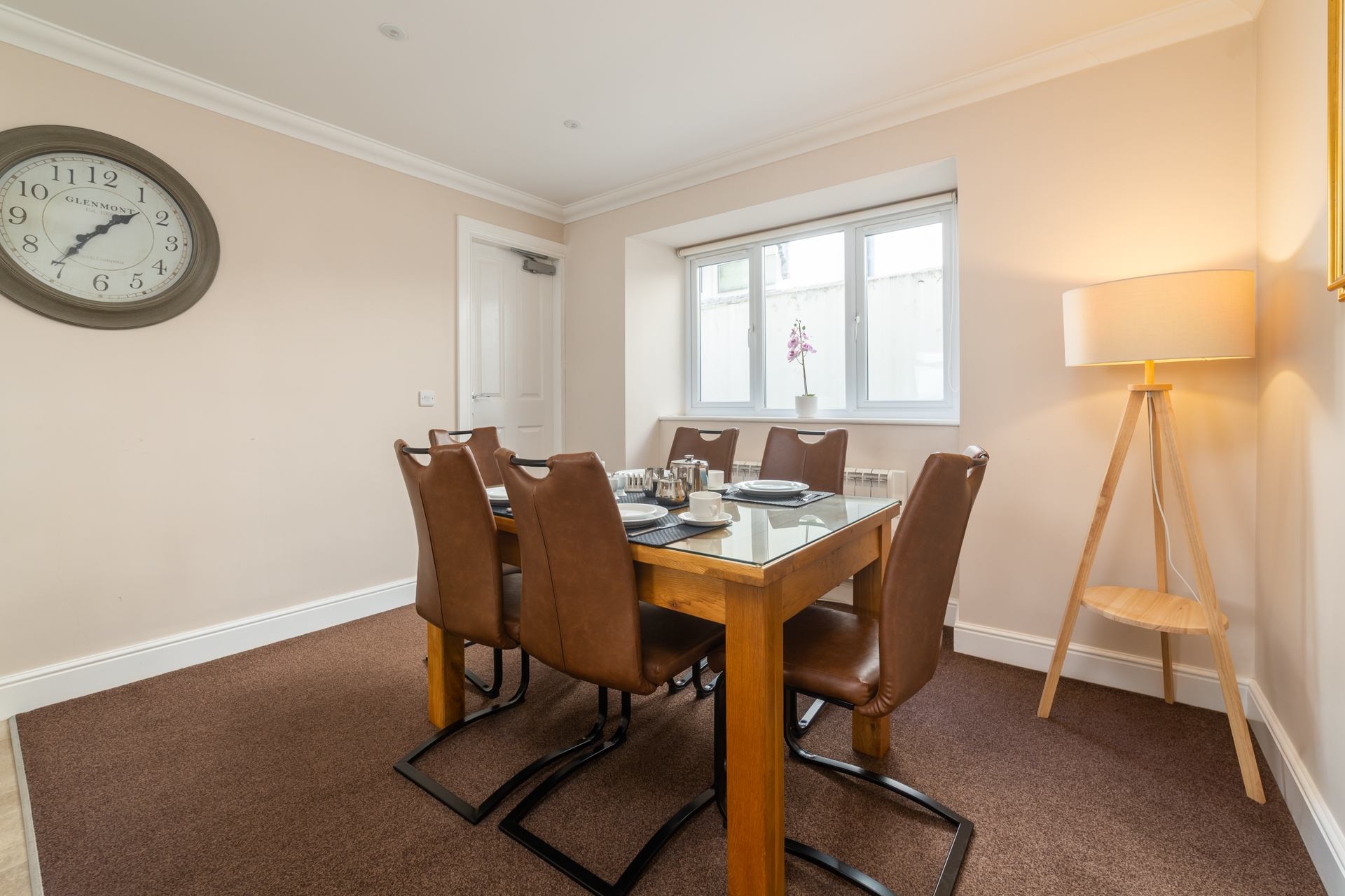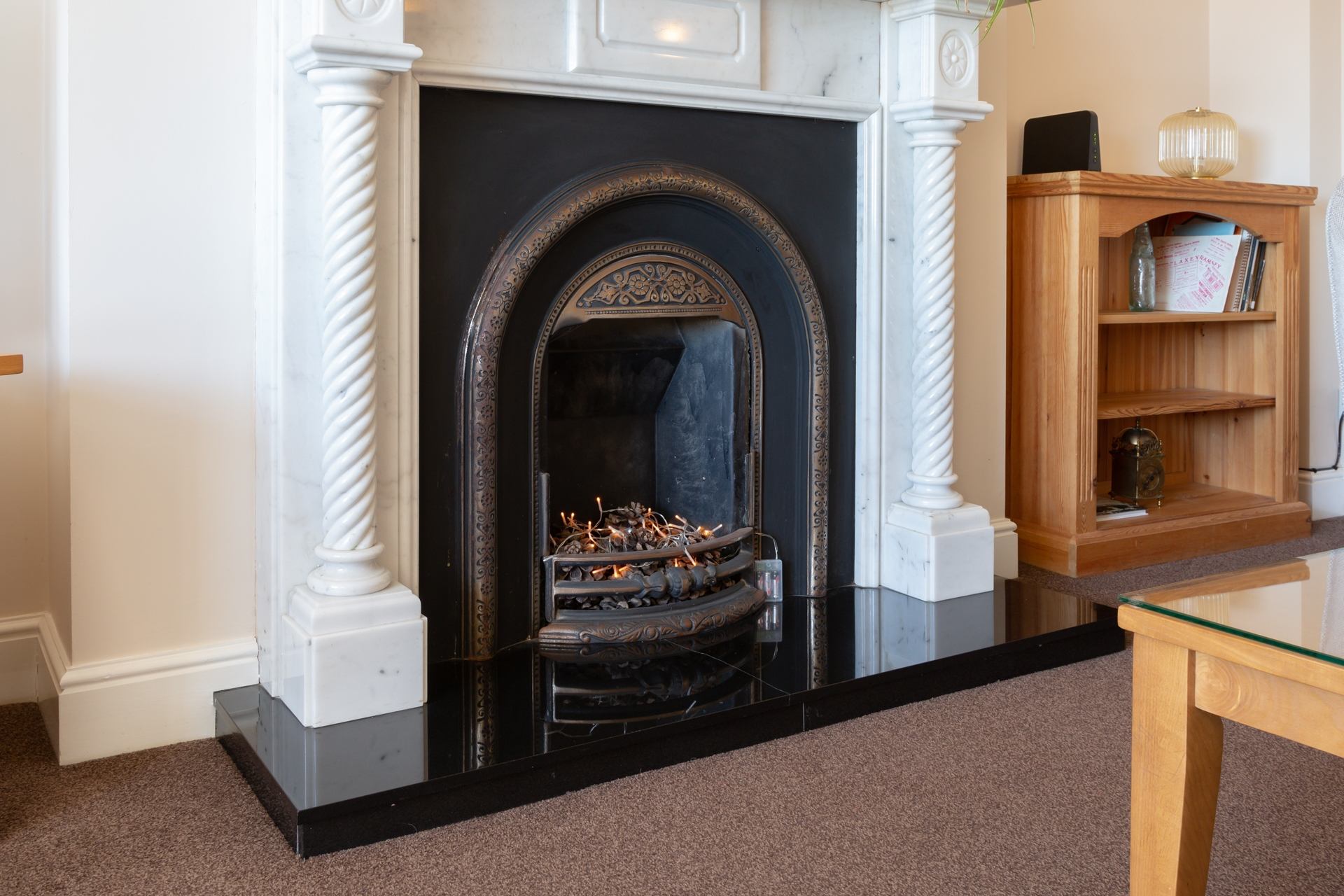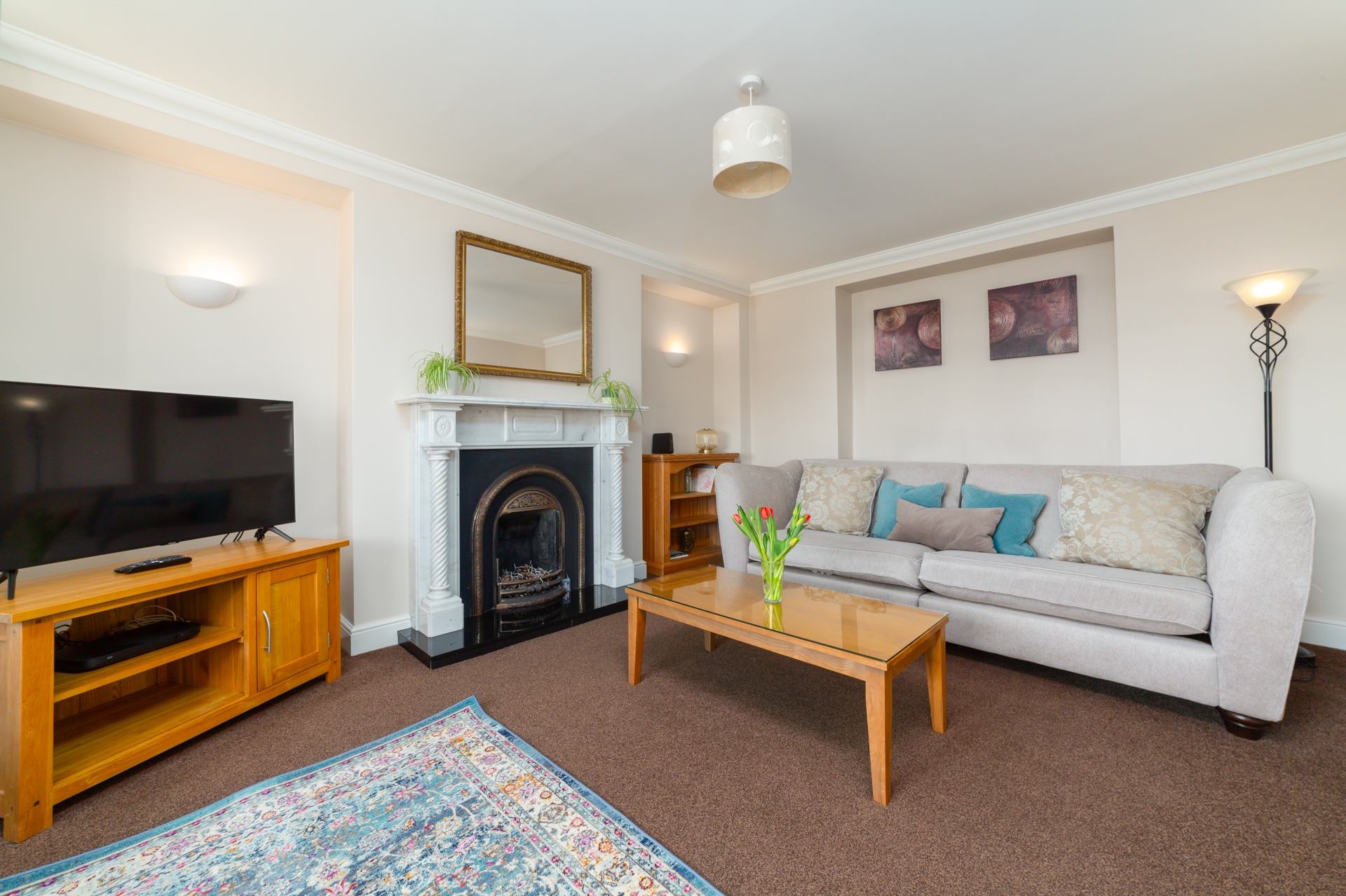 Step through the gate and into the front garden to enjoy serene alfresco moments, where perfectly trimmed hedges ensure privacy. Inside the apartment, cosy and charming interiors await, from the snug living room with a cosy fireplace for the colder months to the main bedroom boasting wide windows framing the ever-changing bay. Watch the sunrise spill across the water or spot passing vessels gliding into the harbour. At the heart of the home, the spacious kitchen/diner is perfect for whipping up a feast for the whole family to share around the dining table, while the breakfast bar is just the spot for slow mornings before coastal adventures.