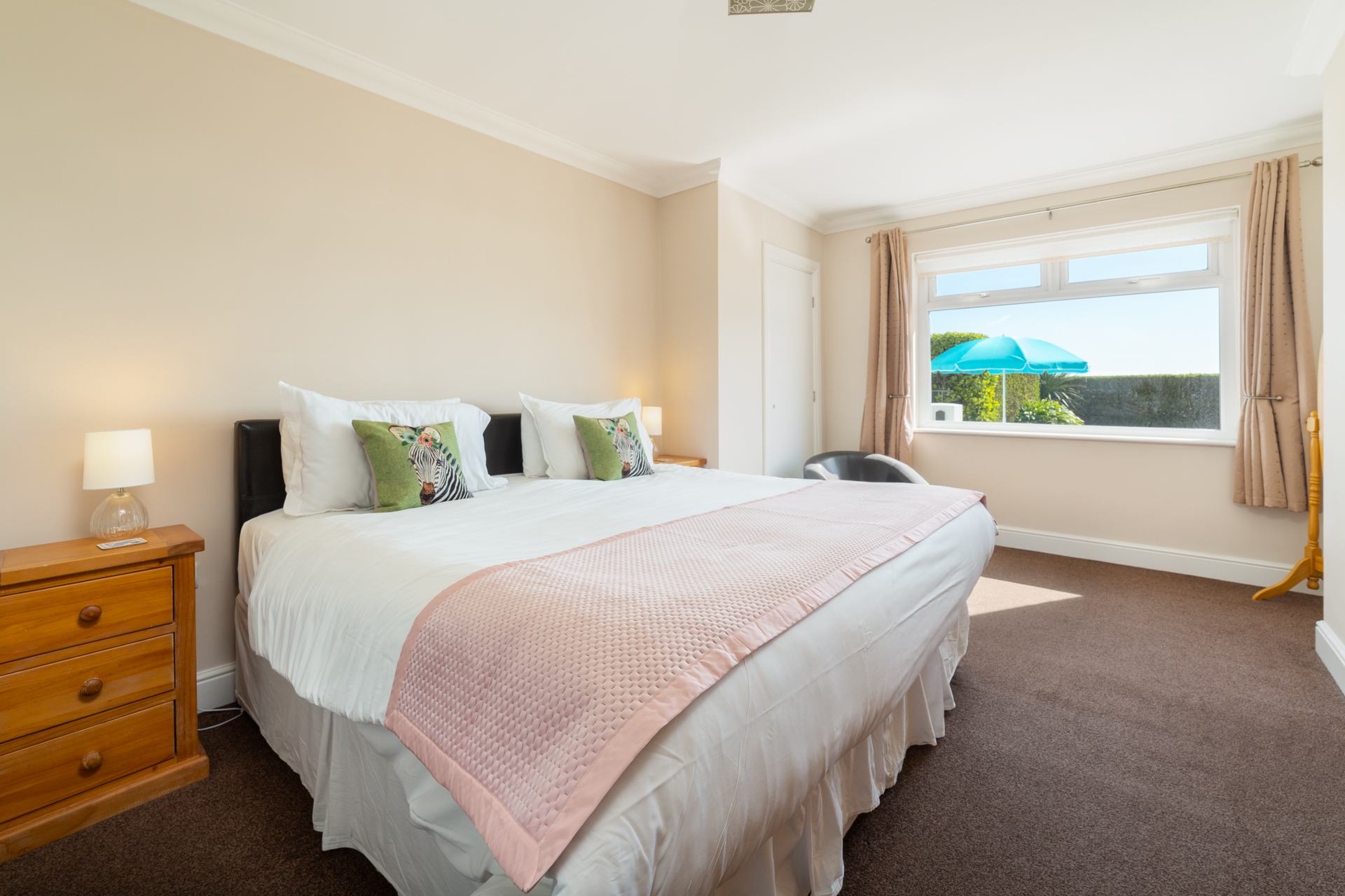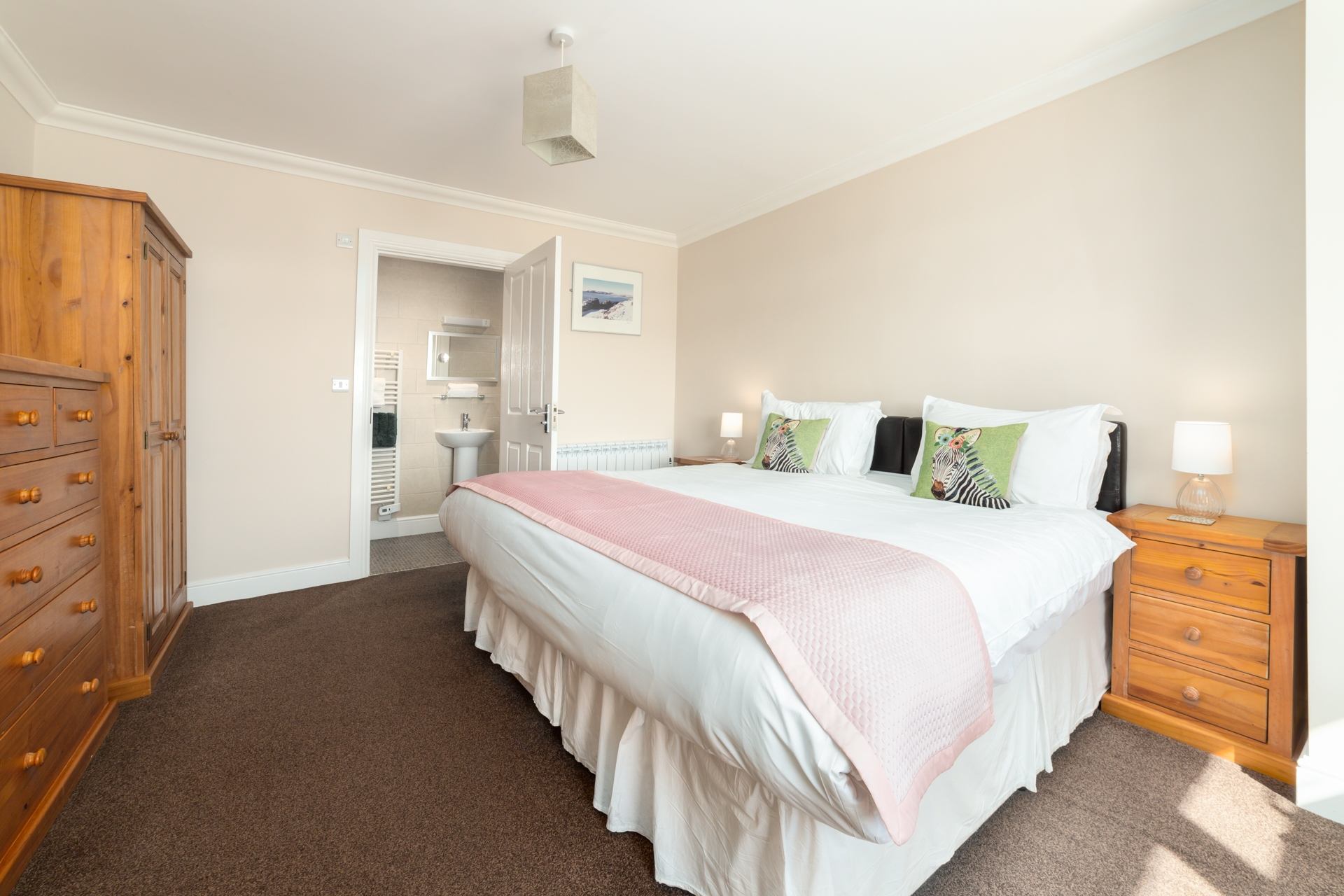 Bedroom 1: Super king-size bed with storage and en-suite facilities, enjoying sea views