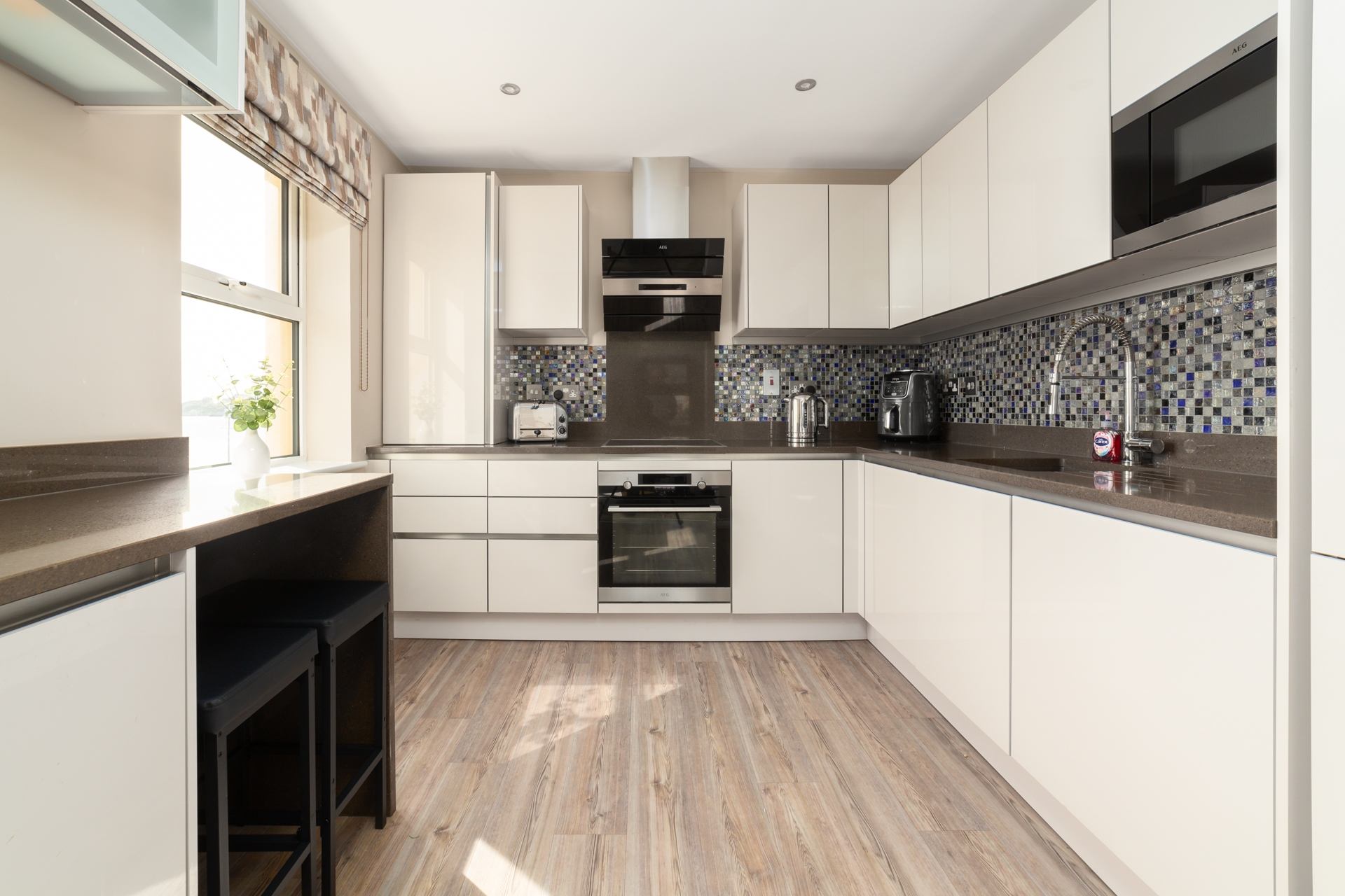 Kitchen: Fully equipped modern kitchen with oven, hob, kettle, microwave, dishwasher and fridge / freezer.