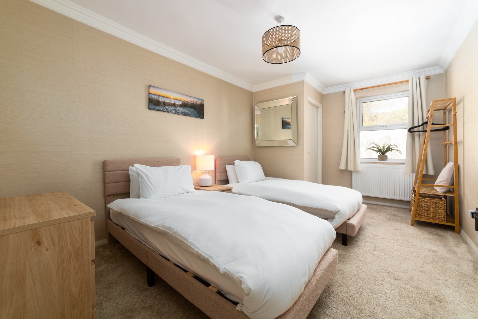 Bedroom 2: Twin bedroom, complete with storage and a relaxed, inviting feel.