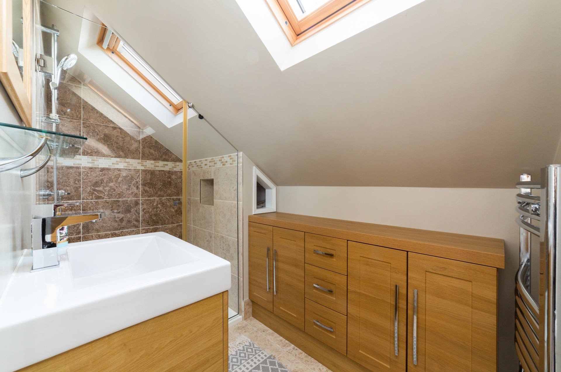 En-suite: Walk-in shower, WC, hand basin, and heated towel rail