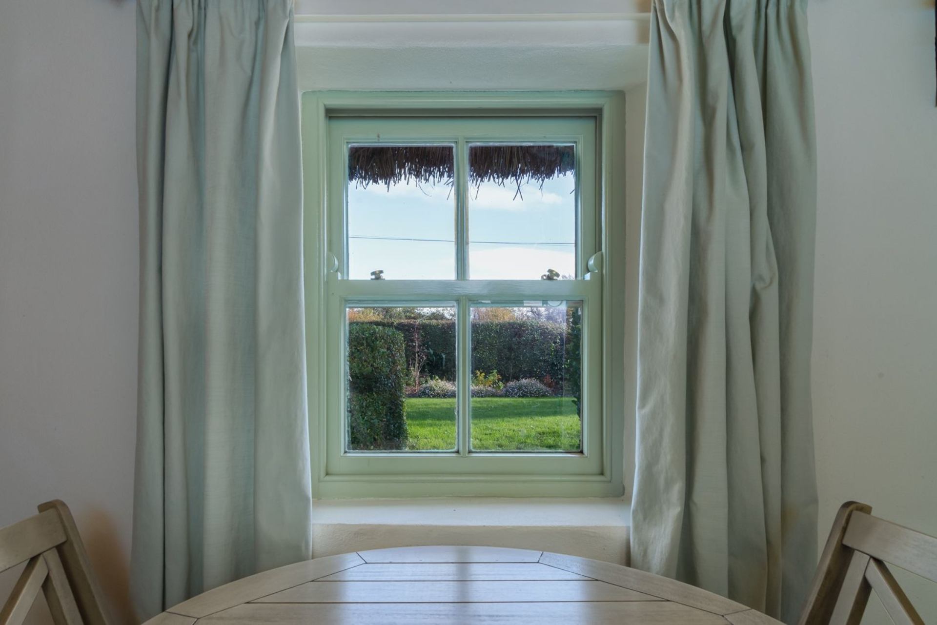 Quaint and cosy thatched cottage set in beautiful gardens. We particularly enjoyed using the summer house to relax and enjoy the peace and quiet. A few minutes walk from the beach. Very relaxing stay.