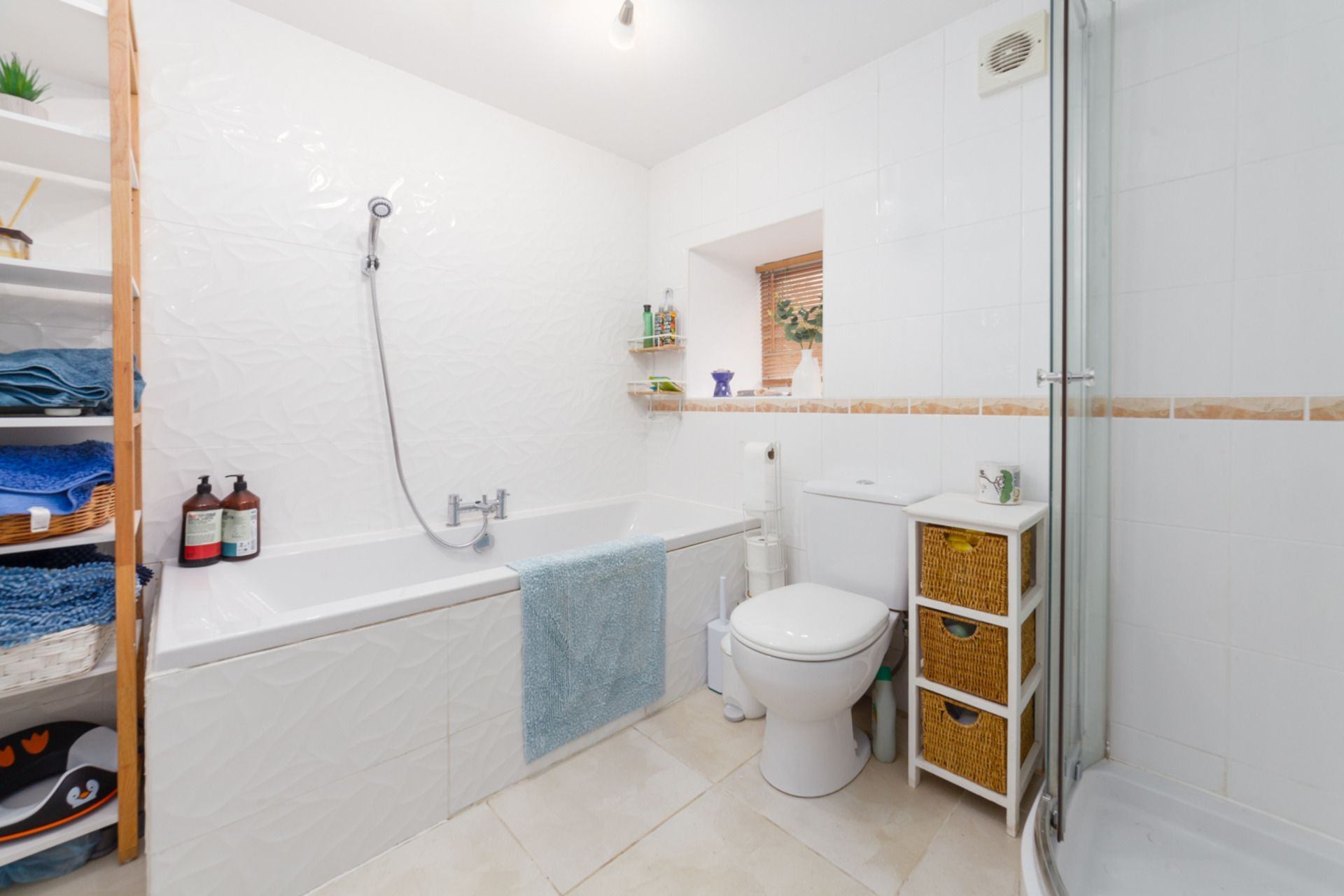 Family Bathroom: Bath with separate shower, WC and wash hand basin
