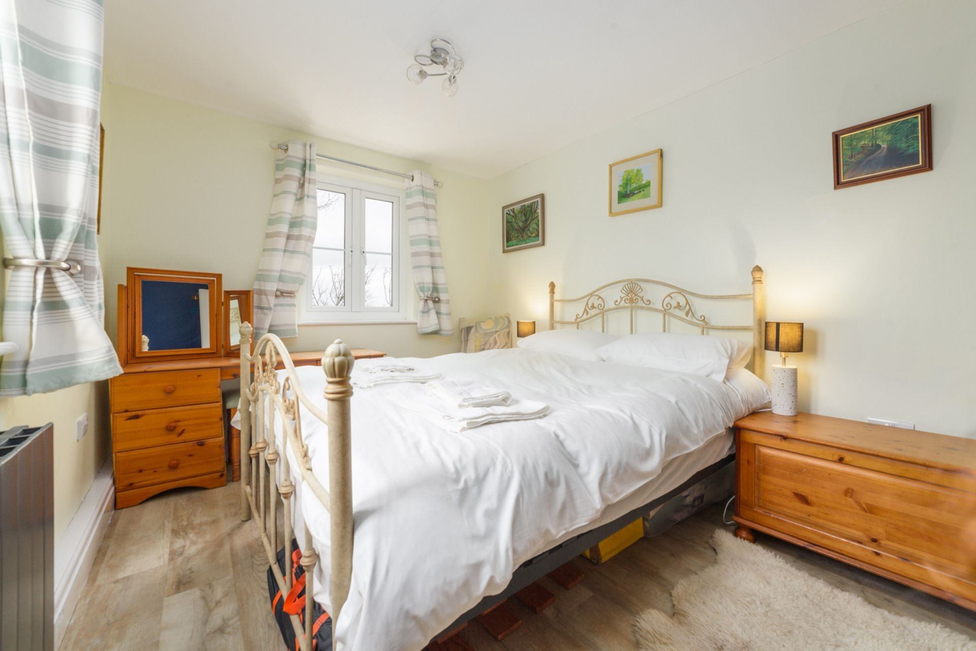 Bedroom 1: King size bed, bedside cabinets, dressing table, wardrobe, bookcase