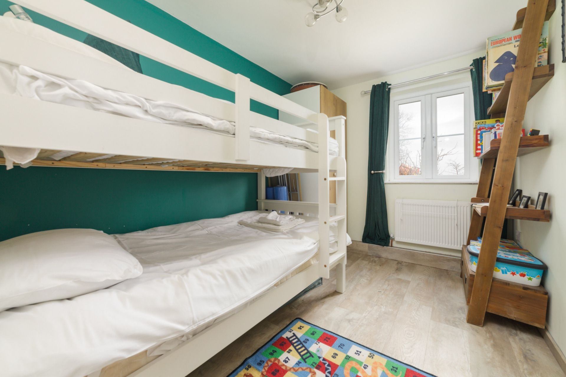 Bedroom 2: Bunk beds suitable for children, wardrobe, shelving