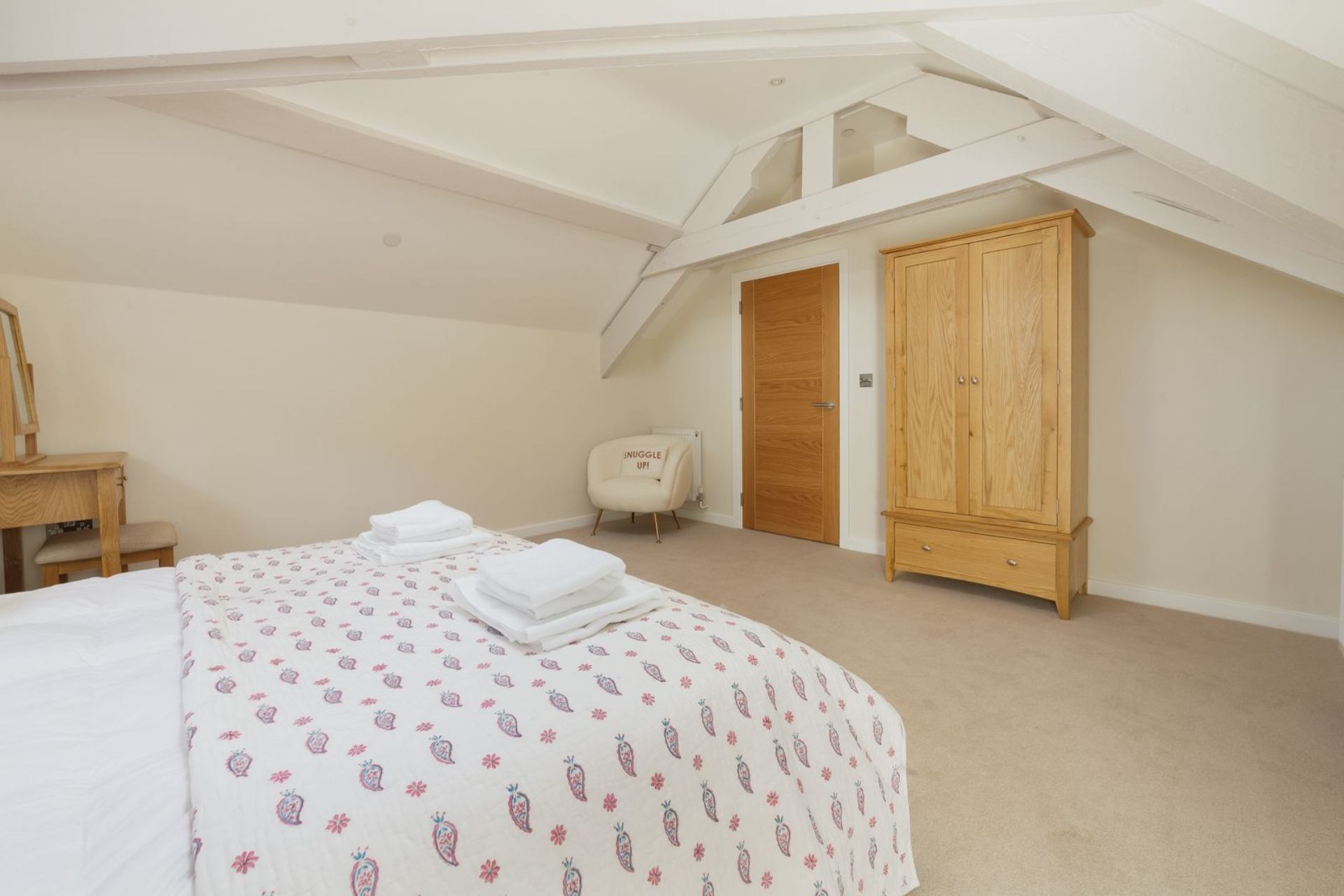 Bedroom 1: King size bed, bedside cabinets, dressing table and wardrobe.