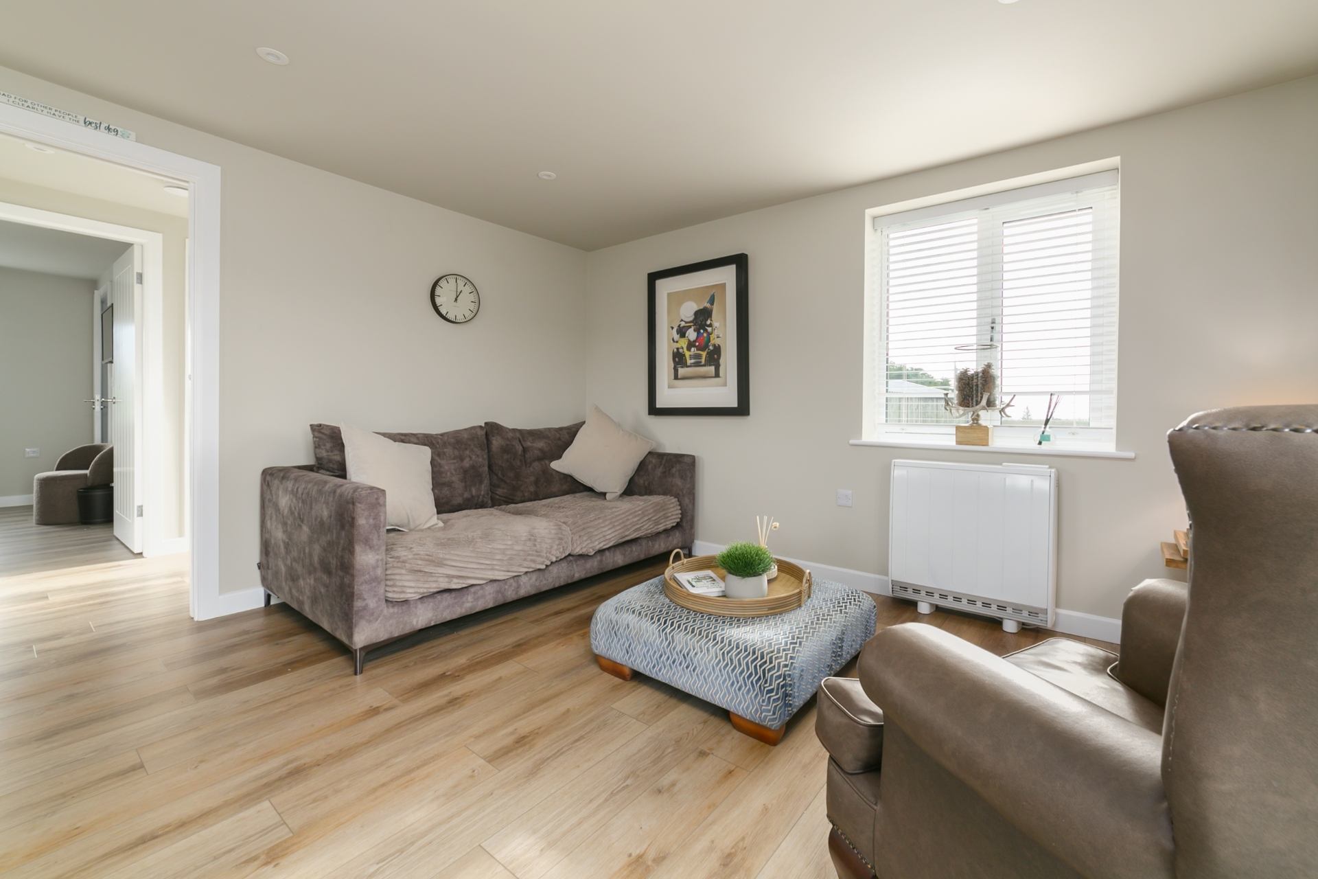 Living area: Comfortable 2 seater sofa, armchair, footstool and Smart TV.