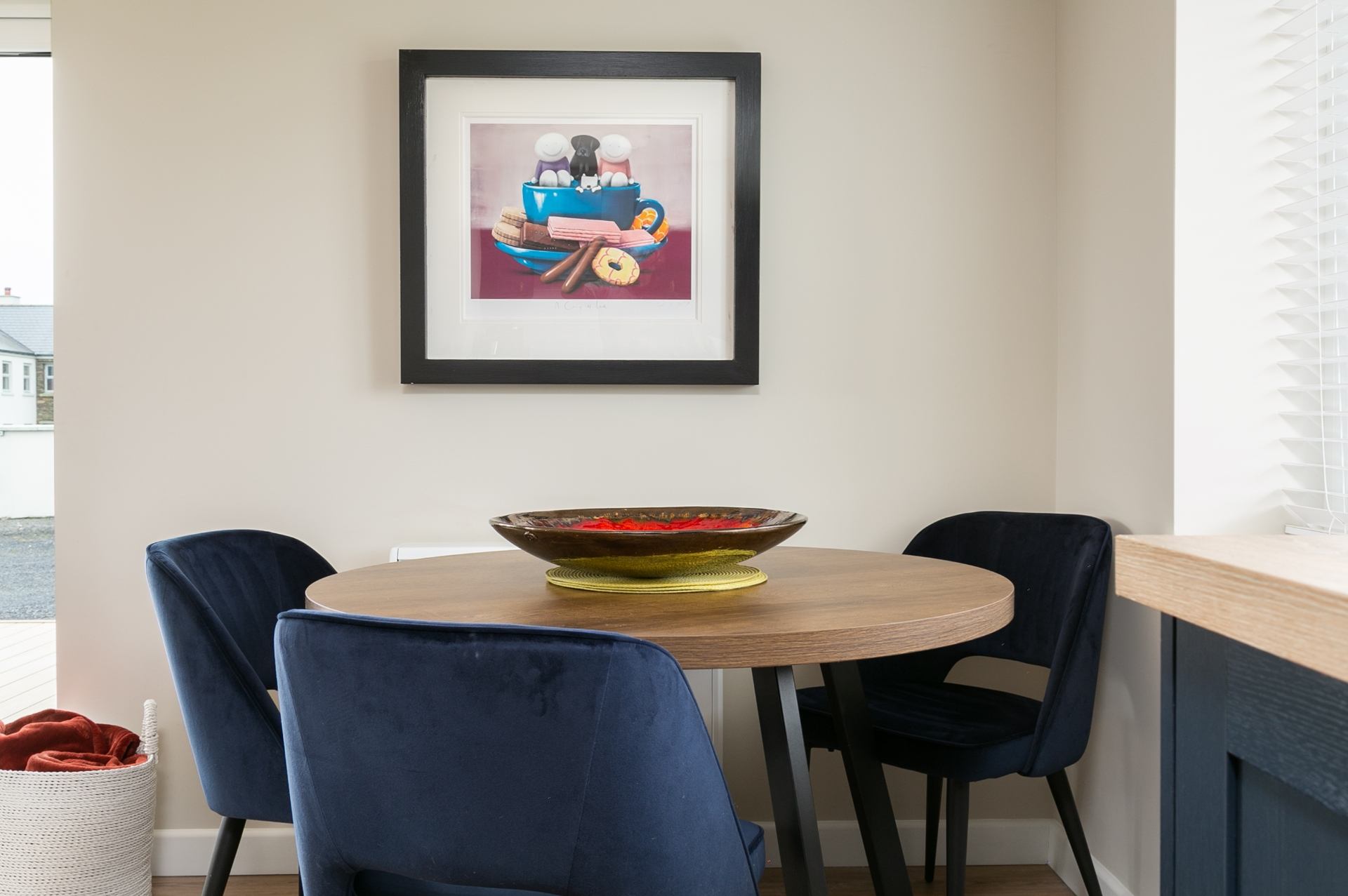 Kitchen & Dining area: Well equipped, with oven, hob, microwave, nespresso coffee machine, air fryer, fridge, freezer, washing machine, tumble dryer and dining table with three chairs.