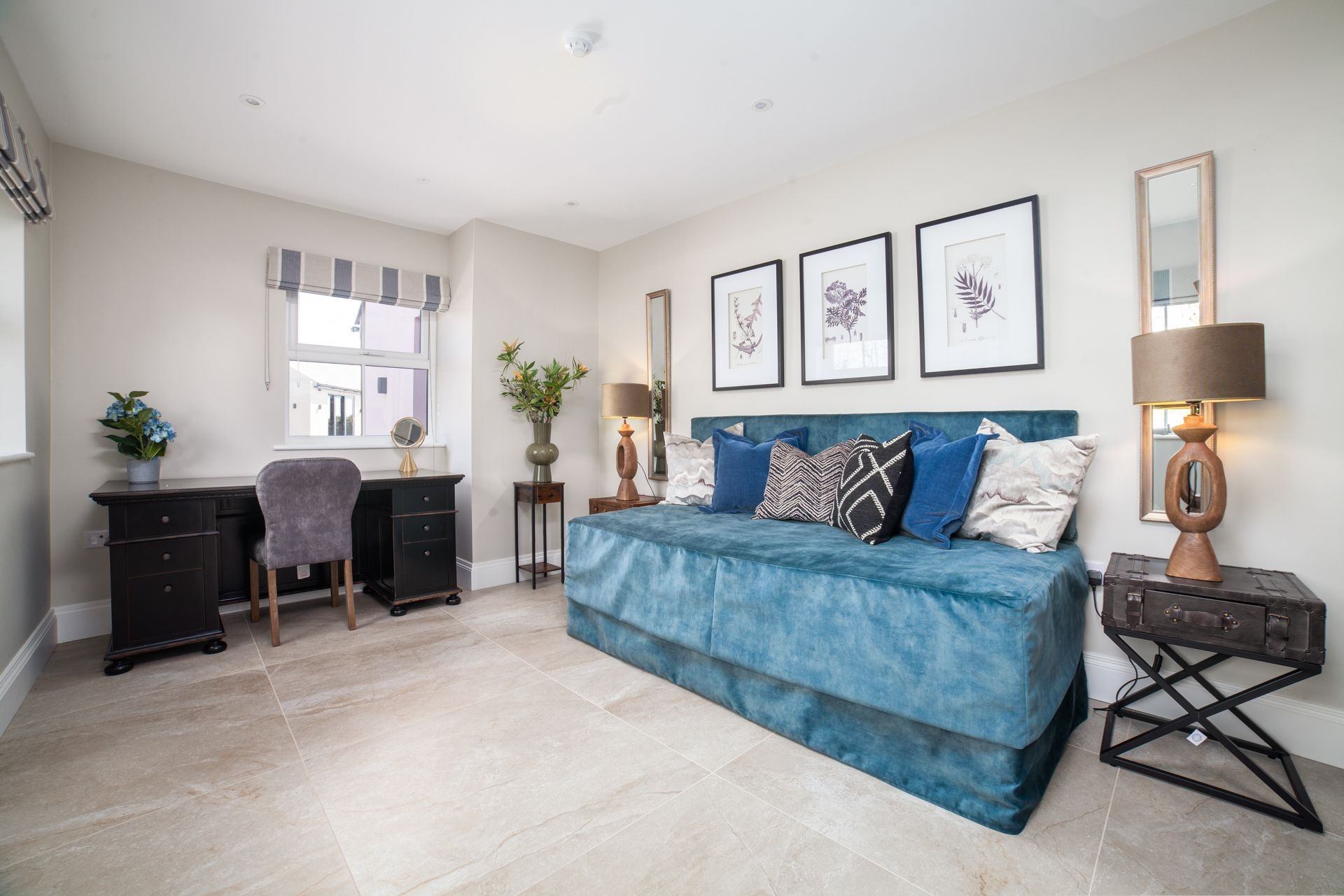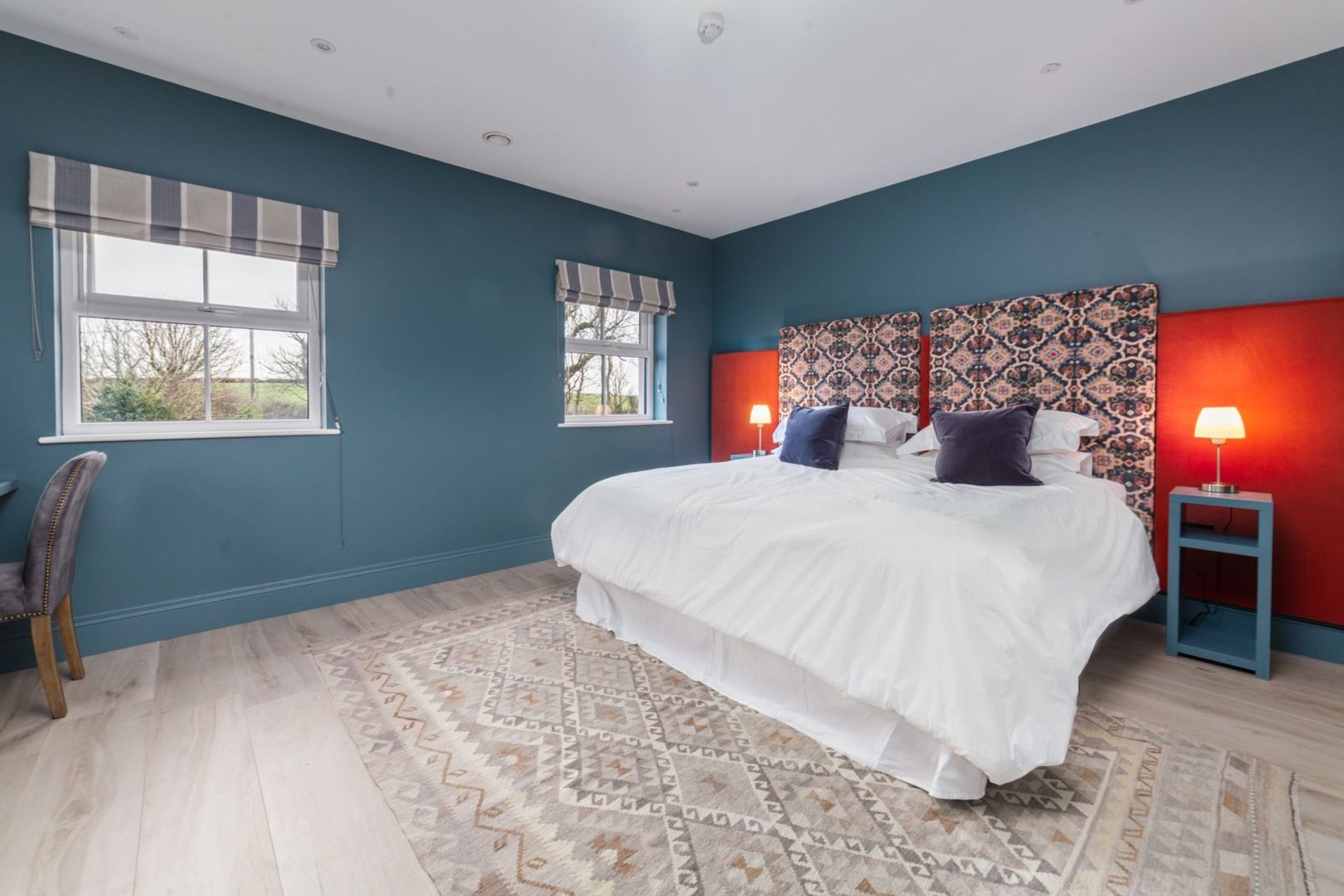 Bedroom 2: Super king size bed (can be configured as twin beds on request), bedside tables, contemporary hanging space, desk, mirror, balcony which can be accessed via French doors.